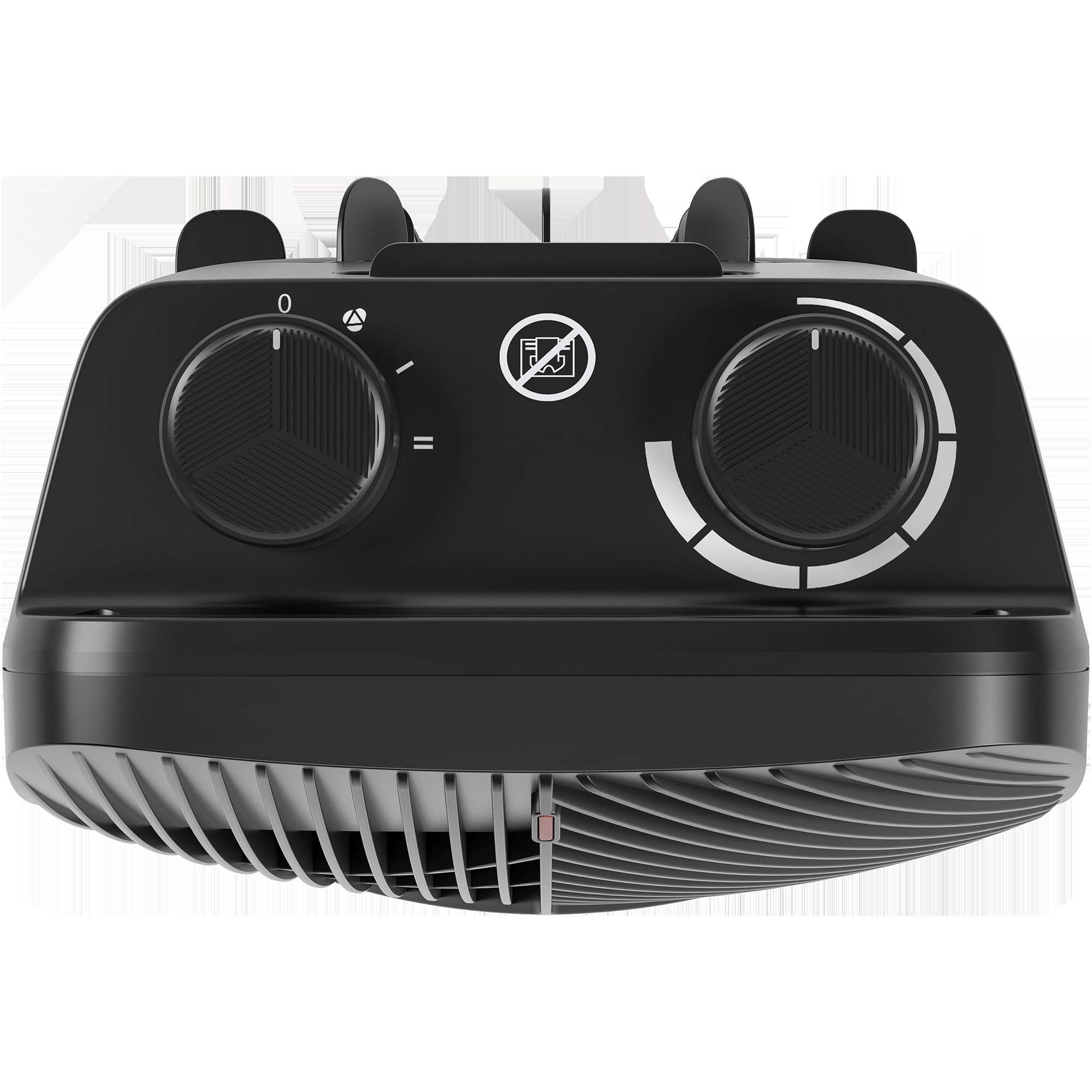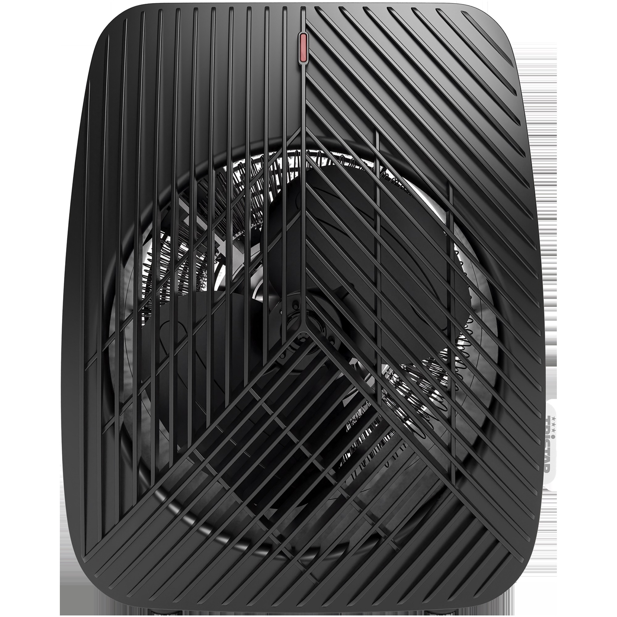 Aérotherme noir facile à utiliser. Le ventilateur diffuse l'air chaud dans la zone à chauffer. Cet appareil peut également être utilisé comme ventilateur pour rafraîchir la pièce. La poignée permet de déplacer facilement cet aérotherme.