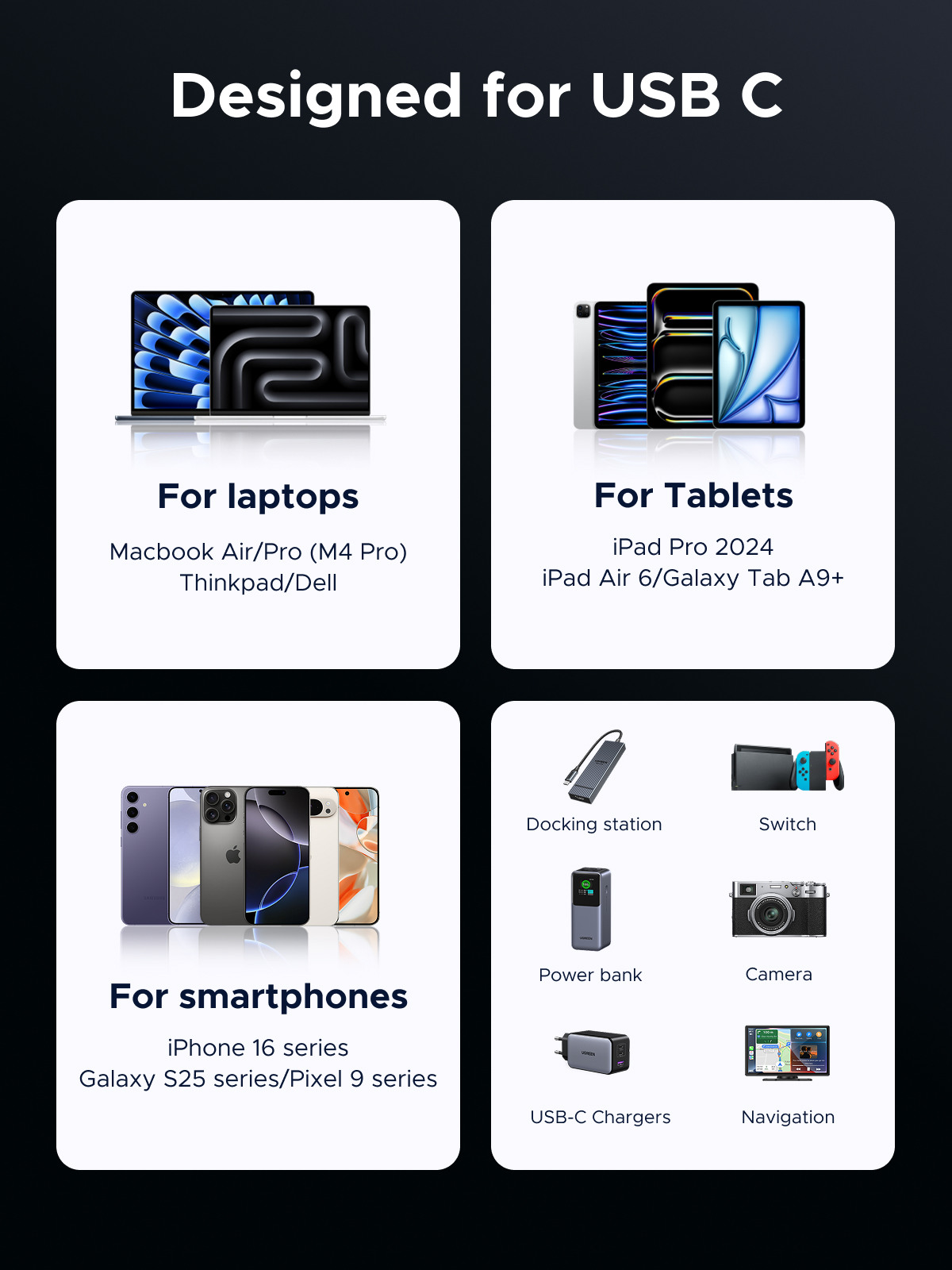 - Robuste et durable : le câble USB-C robuste recouvert de nylon garantit une longue durée de vie avec jusqu'à 10.000 flexions. Les connecteurs USB-C double face avec décharge de traction surmoulée sont conçus pour des branchements fréquents. Le boîtier en aluminium, le fil de cuivre de grande pureté et le triple blindage garantissent des performances de charge rapide de longue durée.