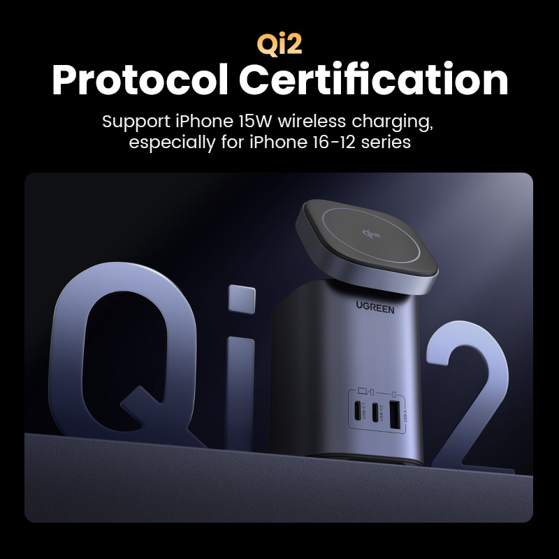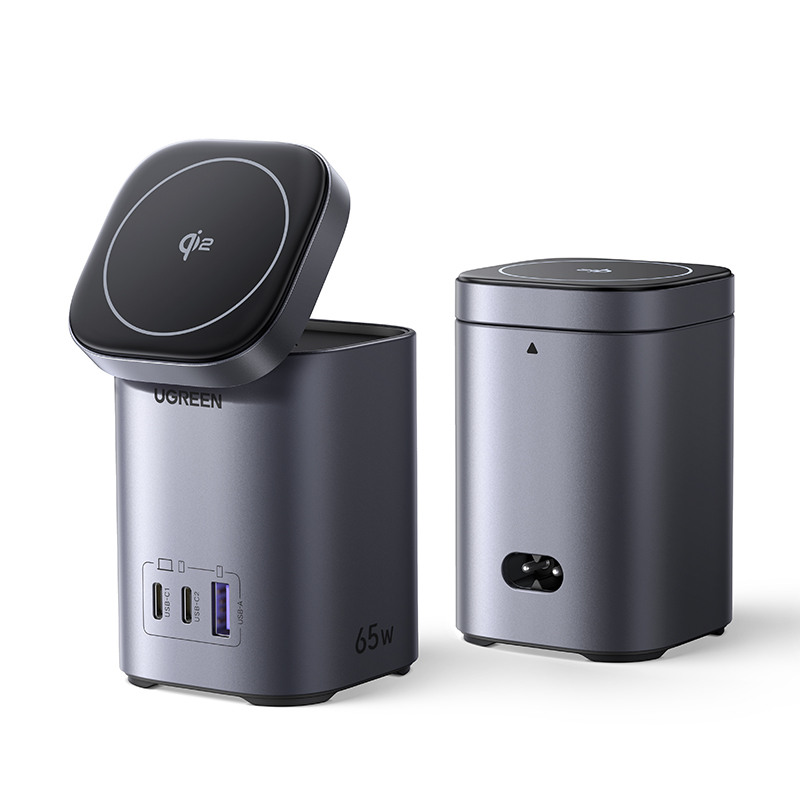 - Station de charge tout-en-un pour 4 appareils : chargez tout votre écosystème en même temps. La station comprend un chargeur magnétique Qi2 pour smartphones, un chargeur séparé pour Apple Watch, un port USB-C de 65 W et un port USB-A pour vos écouteurs.