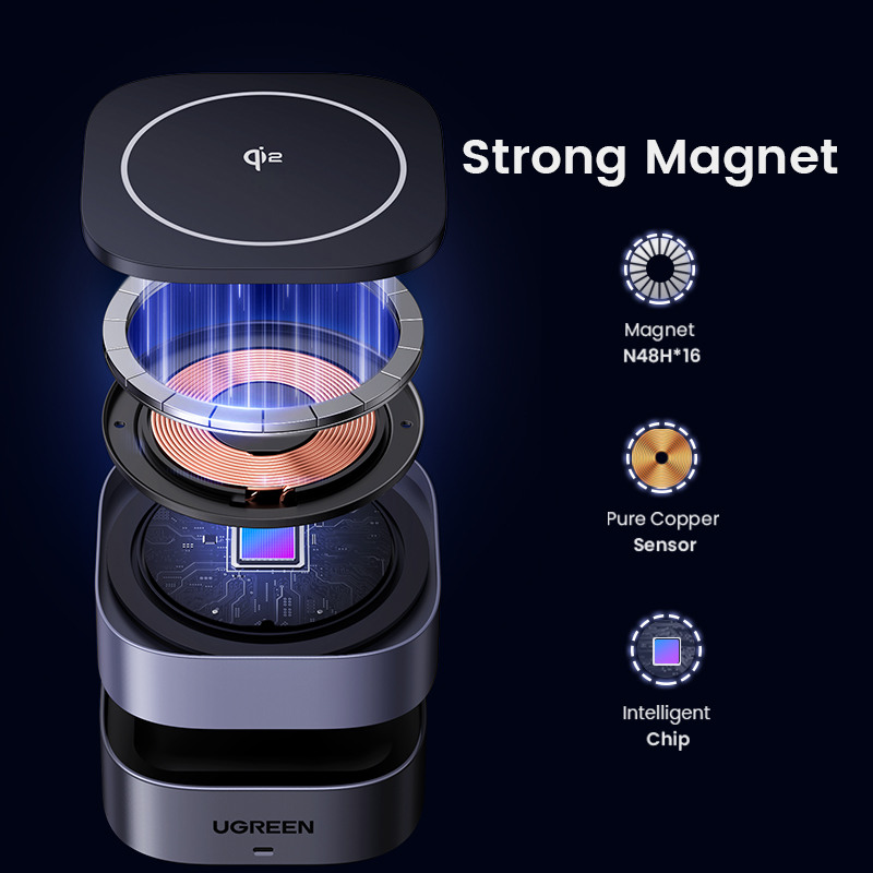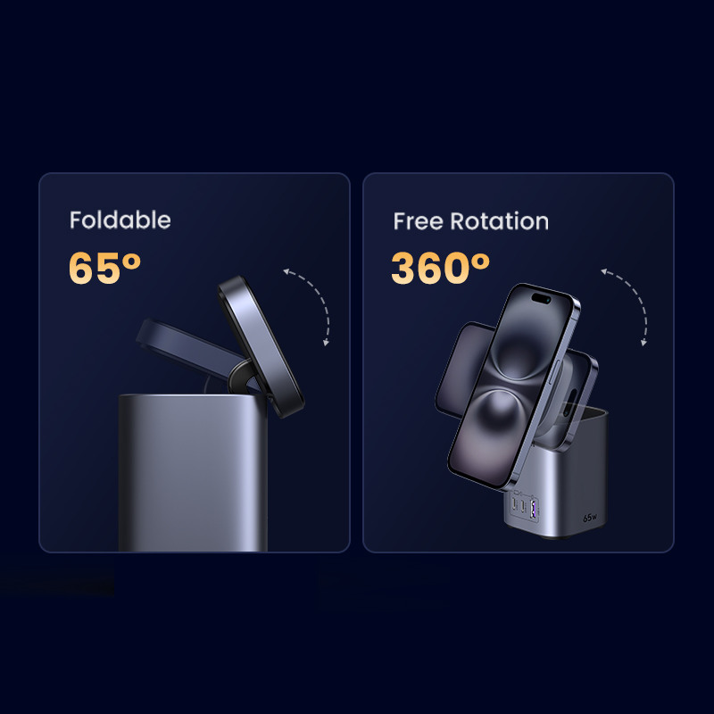 - Support magnétique polyvalent et réglable : le support magnétique pour smartphone peut pivoter à 360° et être réglé jusqu'à 65°. Il est parfait pour regarder des vidéos, passer des appels FaceTime ou utiliser le mode veille pendant le chargement.