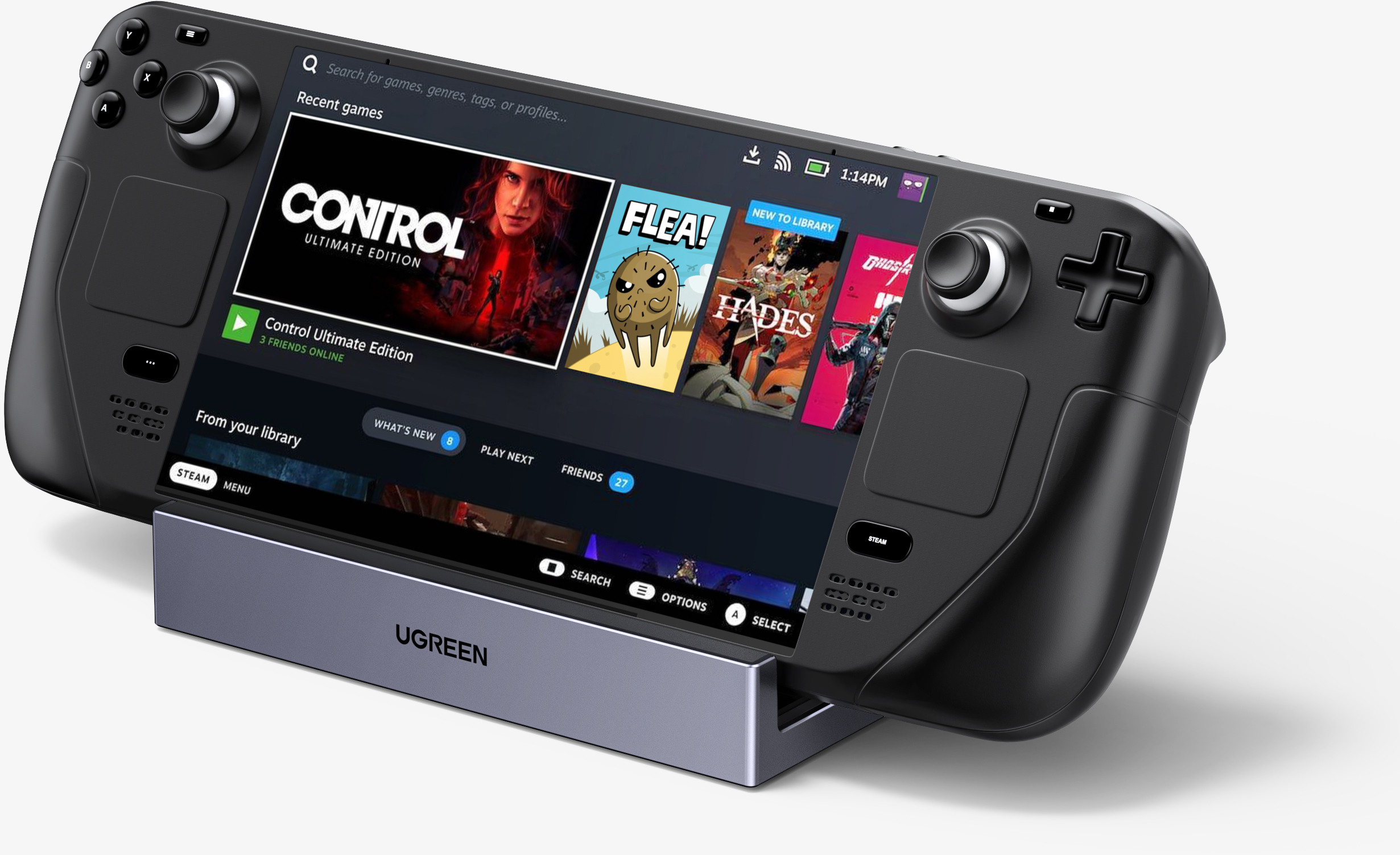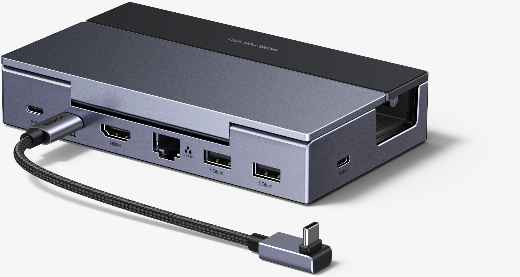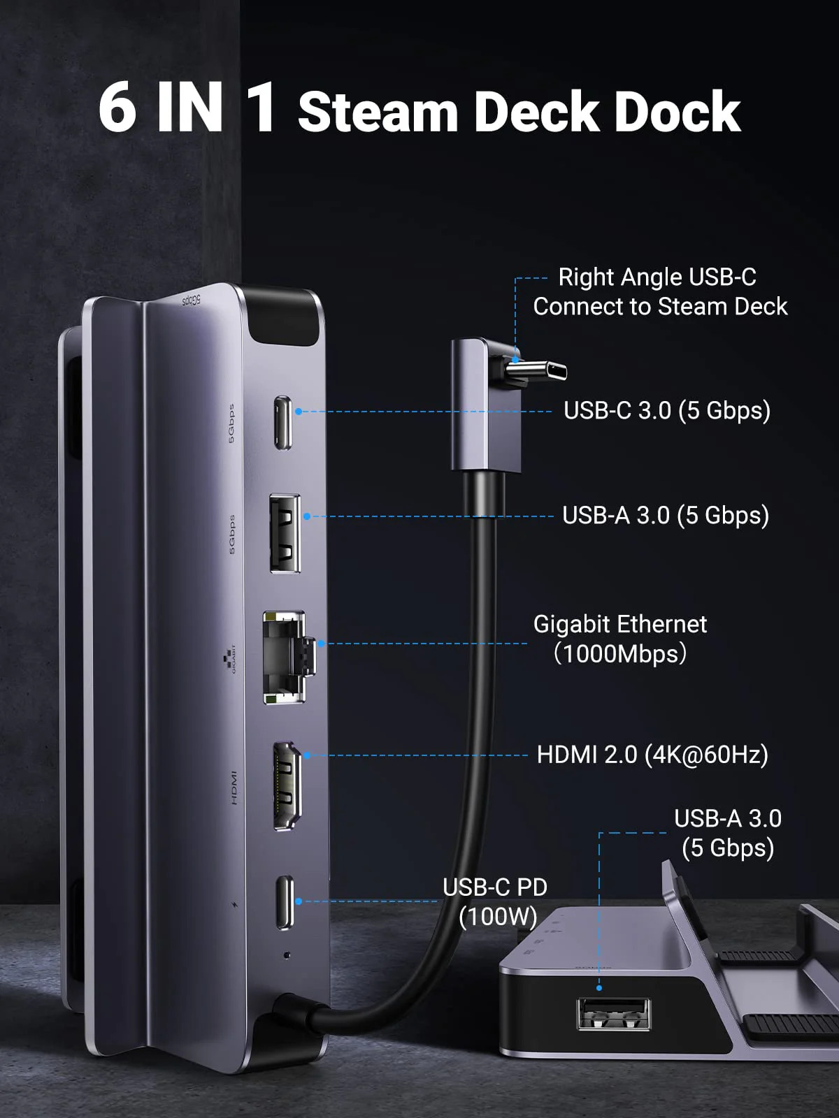 - Plusieurs ports USB-A et USB-C : La station d'accueil UGREEN Steam Deck offre deux ports USB 3.0 et un port USB-C avec des vitesses de transfert de données allant jusqu'à 5 Gbps. Connectez facilement des souris externes, des claviers, des contrôleurs de jeu, des clés USB, des disques durs et d'autres périphériques à votre Steam Deck.
