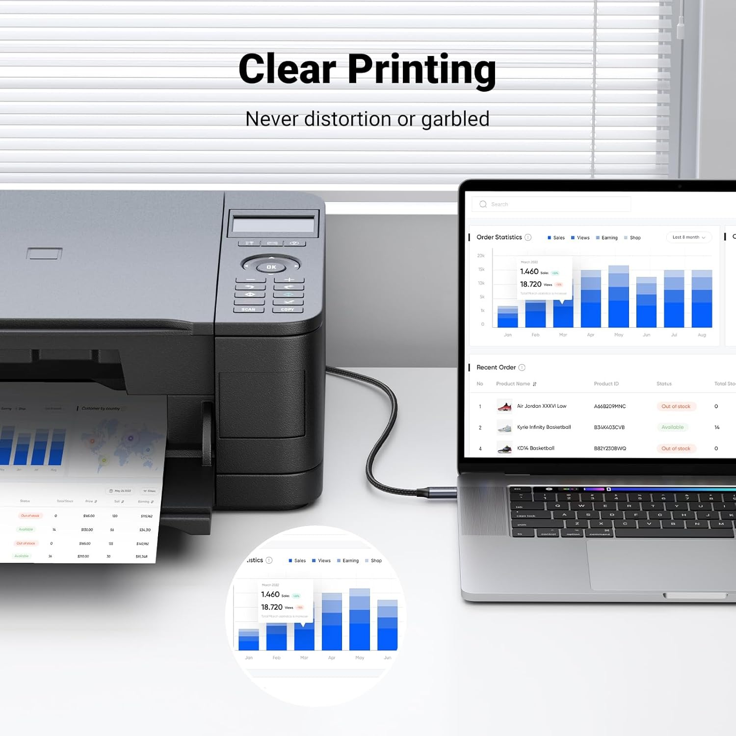 - Stabiles und klares Drucken: Dank oxidationsbeständiger, vernickelter Stecker und dreifacher Abschirmung gegen elektromagnetische Störungen (EMI) durch andere elektrische Geräte bietet dieses USB-C-Druckerkabel eine bessere Übertragungsleistung und Schutz vor EMI/RFI-Störungen. Geniessen Sie klares und komfortables Drucken ohne Datenverlust.