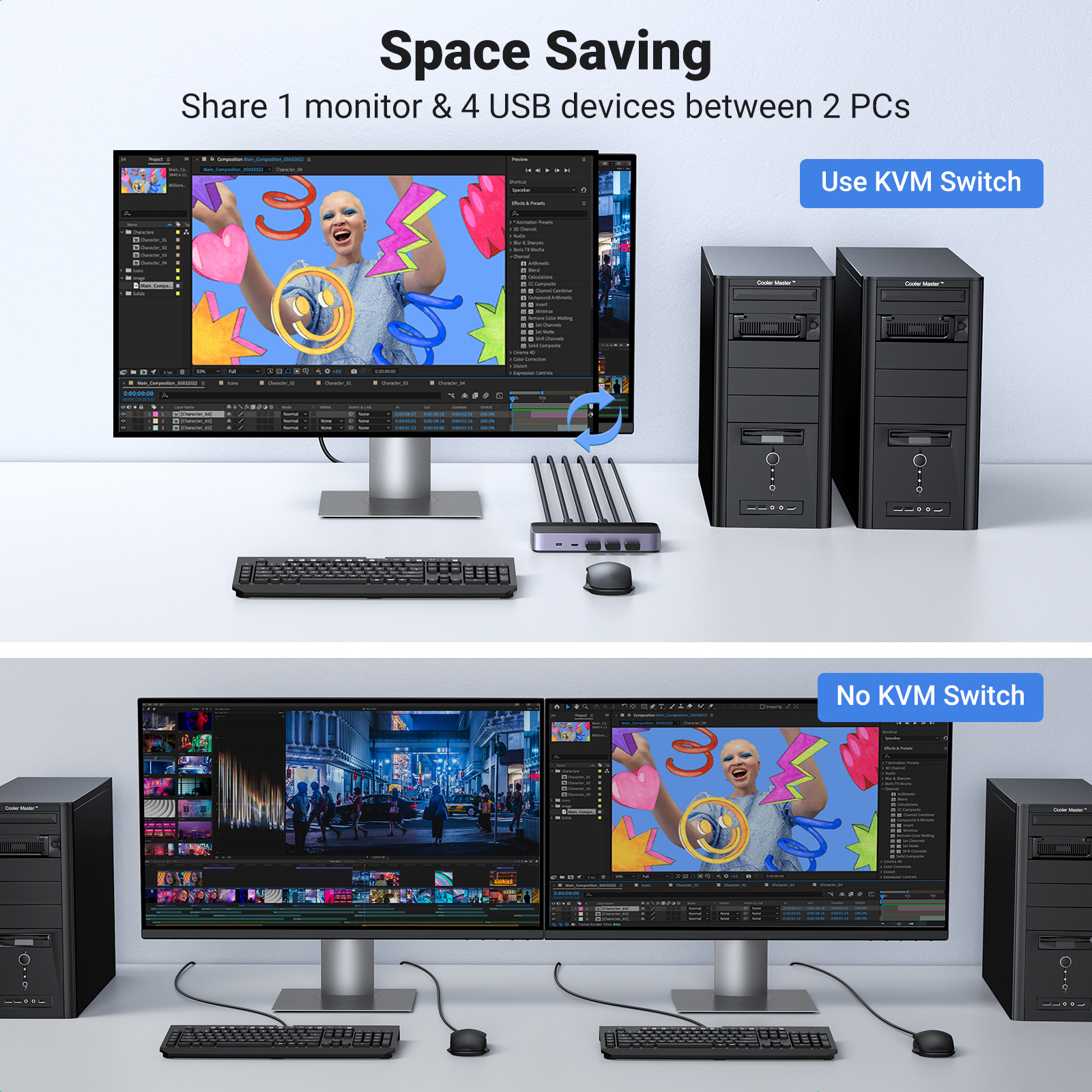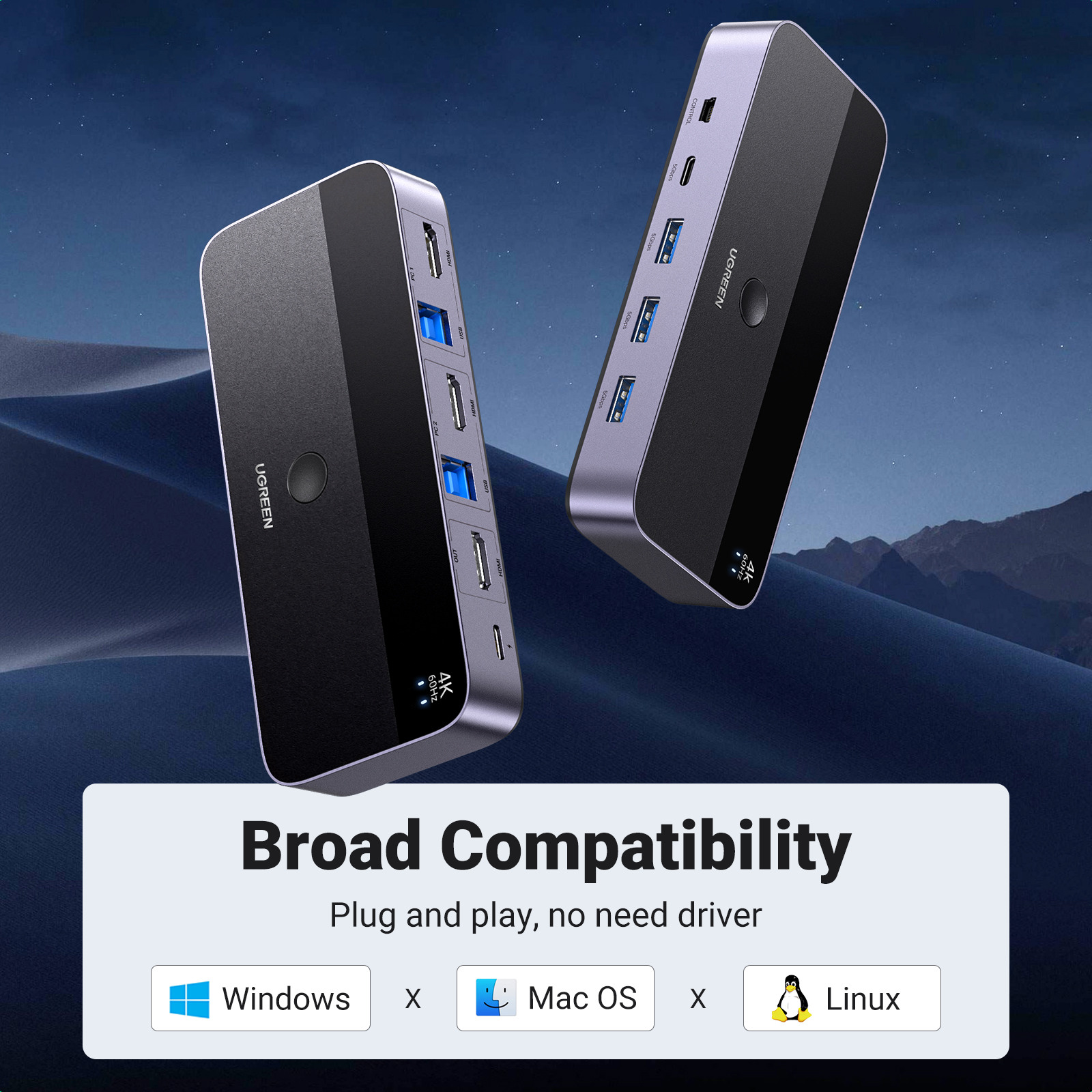 - Ce switch KVM à 2 ports supporte des résolutions jusqu'à 4K@60Hz et est rétrocompatible avec 4K@30Hz, 2560*1440@120Hz et 1920*1080@240Hz. Les commutateurs KVM UGREEN supportent également HDMI 2.0, HDCP 2.2/1.4, 3D, CEC et HDR. L'image est ainsi plus détaillée et plus réaliste, les couleurs sont plus brillantes et plus vives - un vrai plaisir pour les yeux.