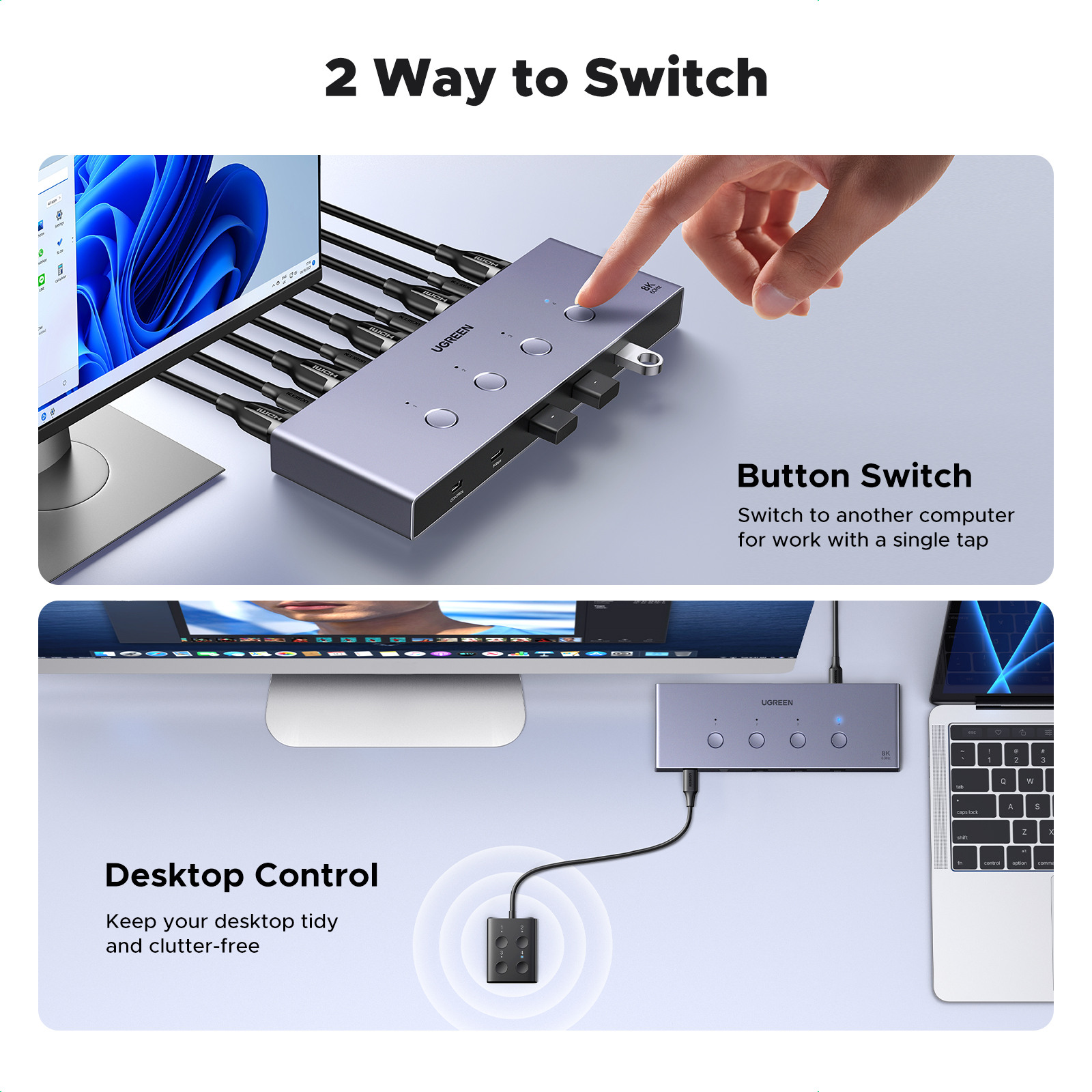 - Commutation flexible : 2 méthodes de commutation - boutons de produit et contrôleur de bureau, permettant de passer sans effort d'un appareil à l'autre. Plug-and-play. Synchronise automatiquement l'audio et la vidéo HDMI sans latence, permettant ainsi un multitâche efficace aussi bien au bureau qu'à domicile.