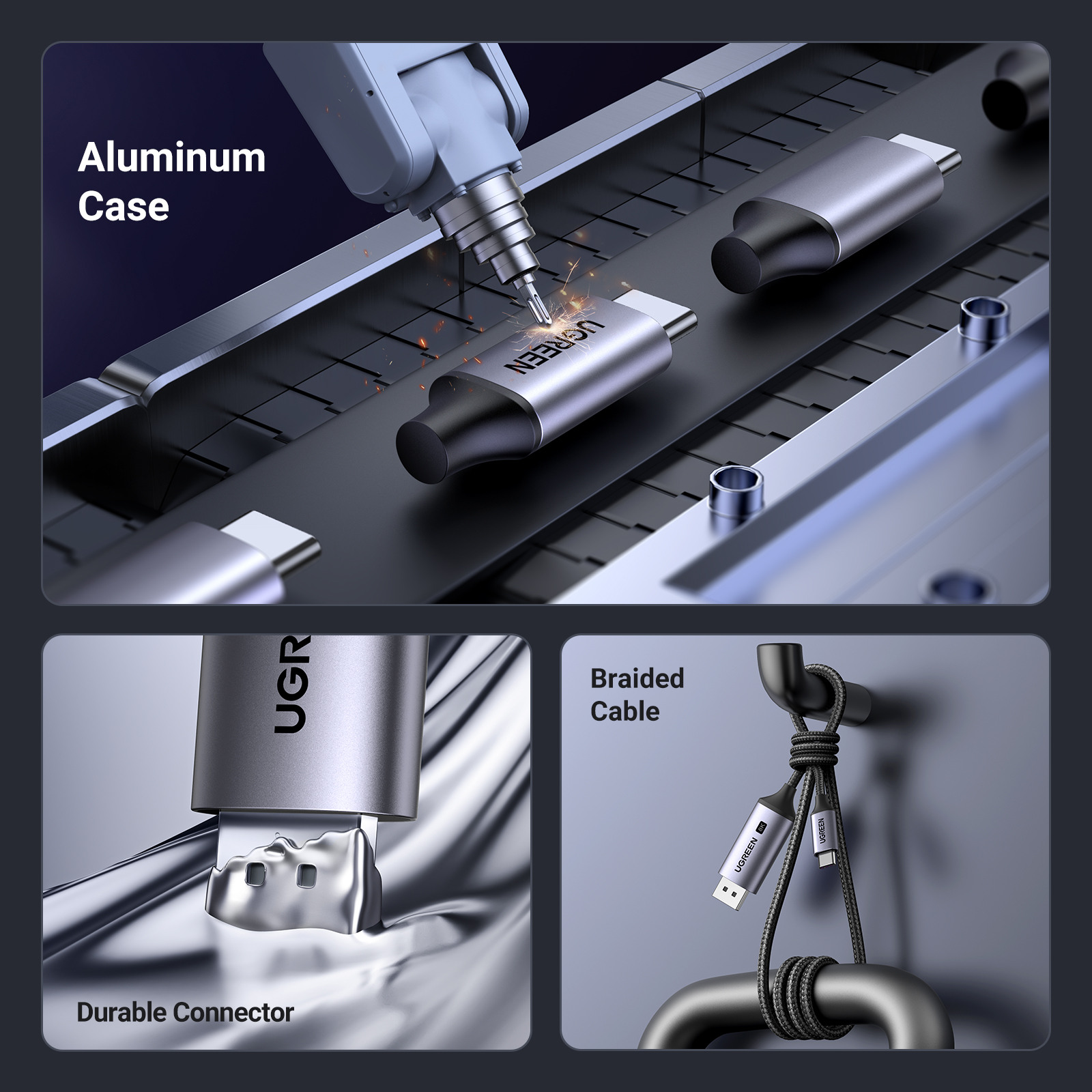 - Extrêmement robuste : le câble DisplayPort est triplement blindé et fabriqué en matériau étamé. Il offre une protection contre les surtensions et les rayonnements électromagnétiques. Le boîtier en alliage d'aluminium empêche les fissures et accélère la dissipation de la chaleur. Combiné à un tissu en nylon robuste, il est dix fois plus durable que le PVC. Il résiste à plus de 16.000 flexions tout en garantissant une transmission stable des images.
