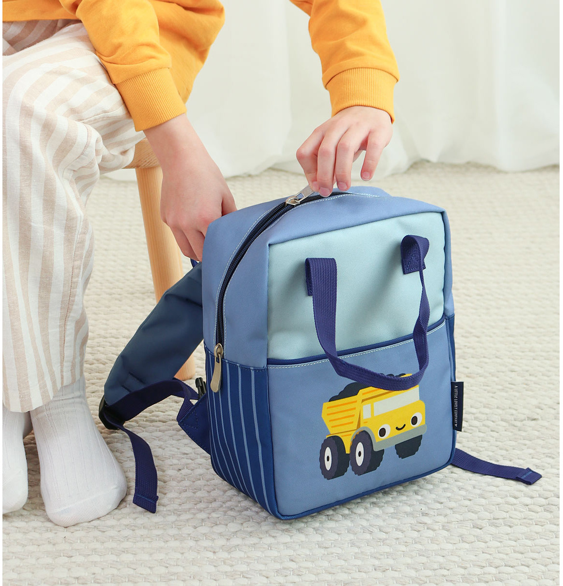 Ce petit sac à dos avec poignée, a la taille parfaite pour les petits enfants. Le sac reste toujours en place, car les bretelles réglables ne tombent pas grâce à la boucle.