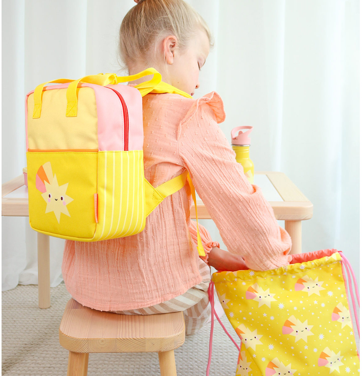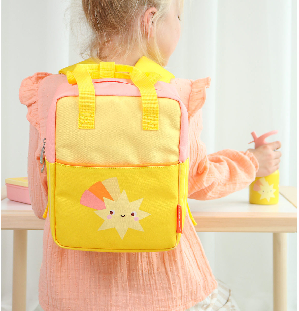 Ce petit sac à dos avec poignée, a la taille parfaite pour les petits enfants. Le sac reste toujours en place, car les bretelles réglables ne tombent pas grâce à la boucle.