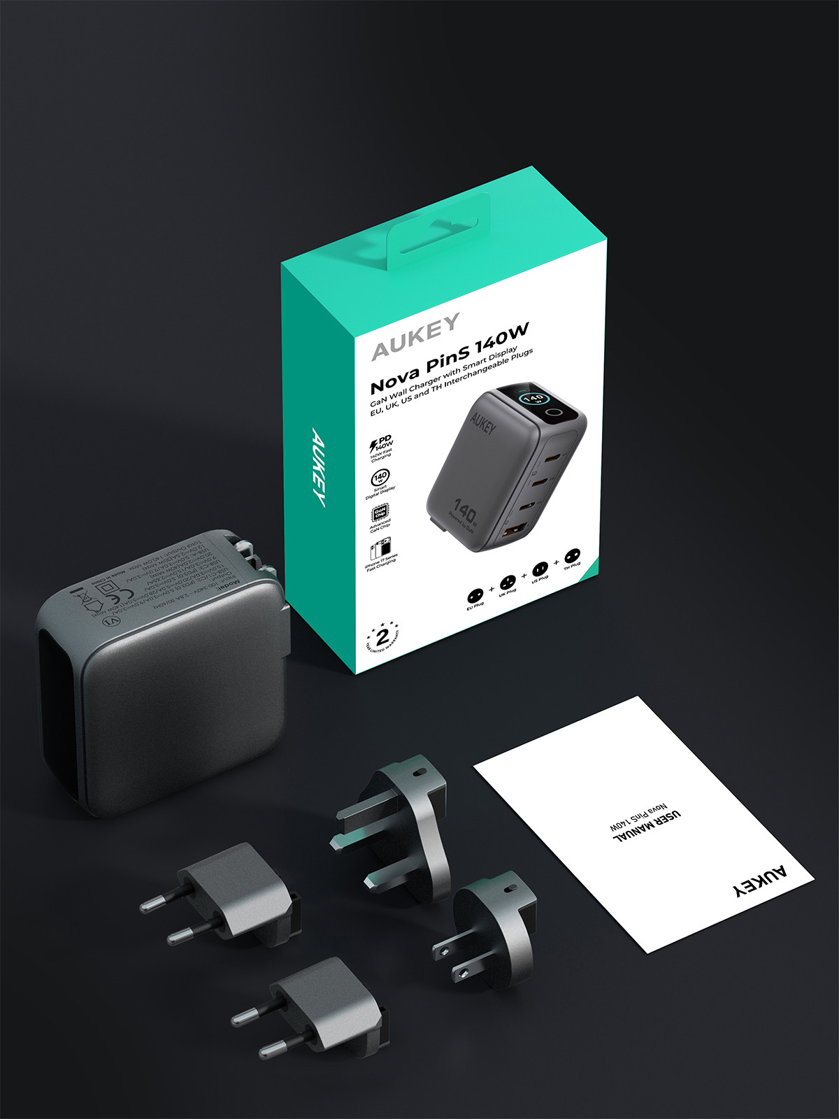 Le chargeur GaN avancé combine une forte puissance de charge avec un écran intégré pratique. Grâce aux prises interchangeables pour différents pays, la compatibilité mondiale est garantie. Que ce soit au quotidien, en voyage d'affaires, à la maison ou au bureau, ce chargeur s'adapte parfaitement à toutes les situations.