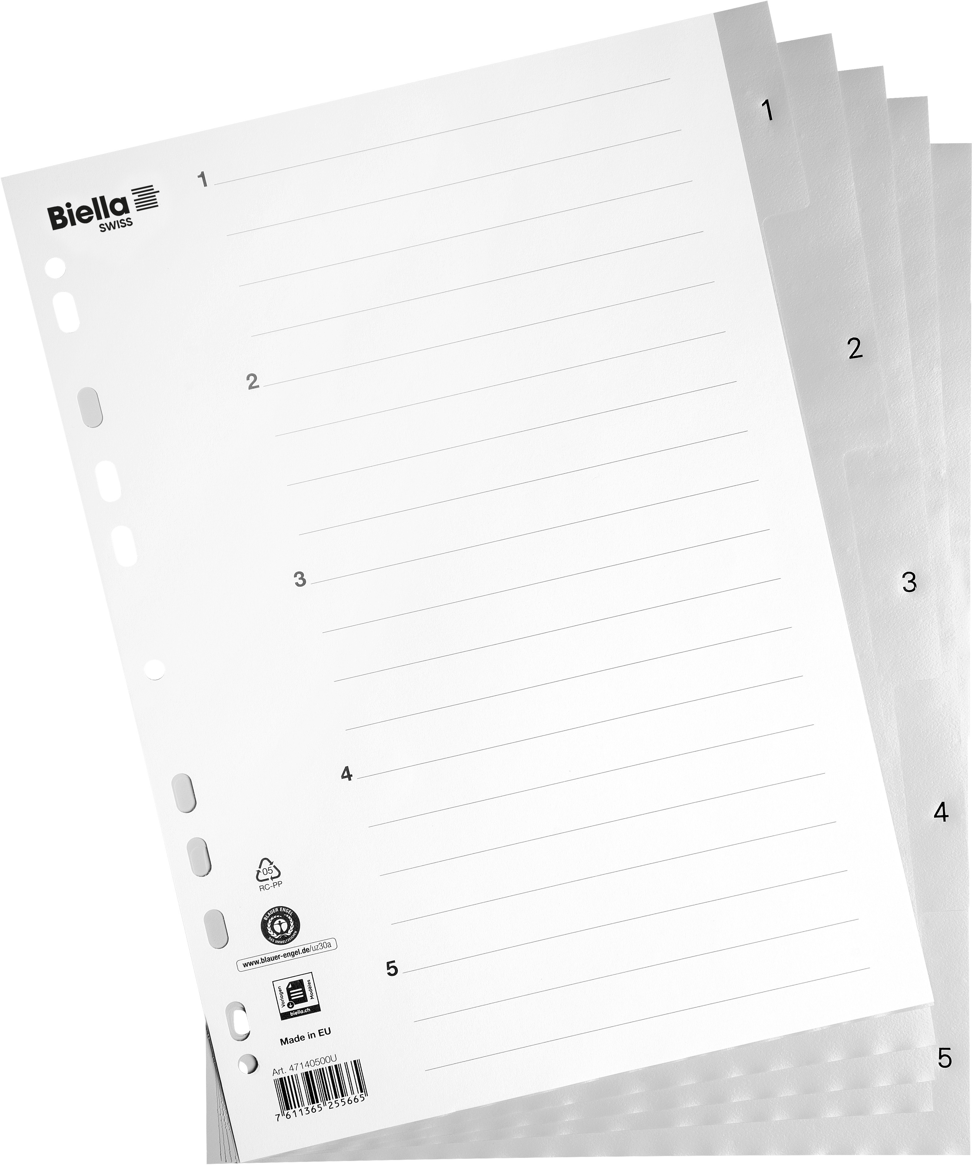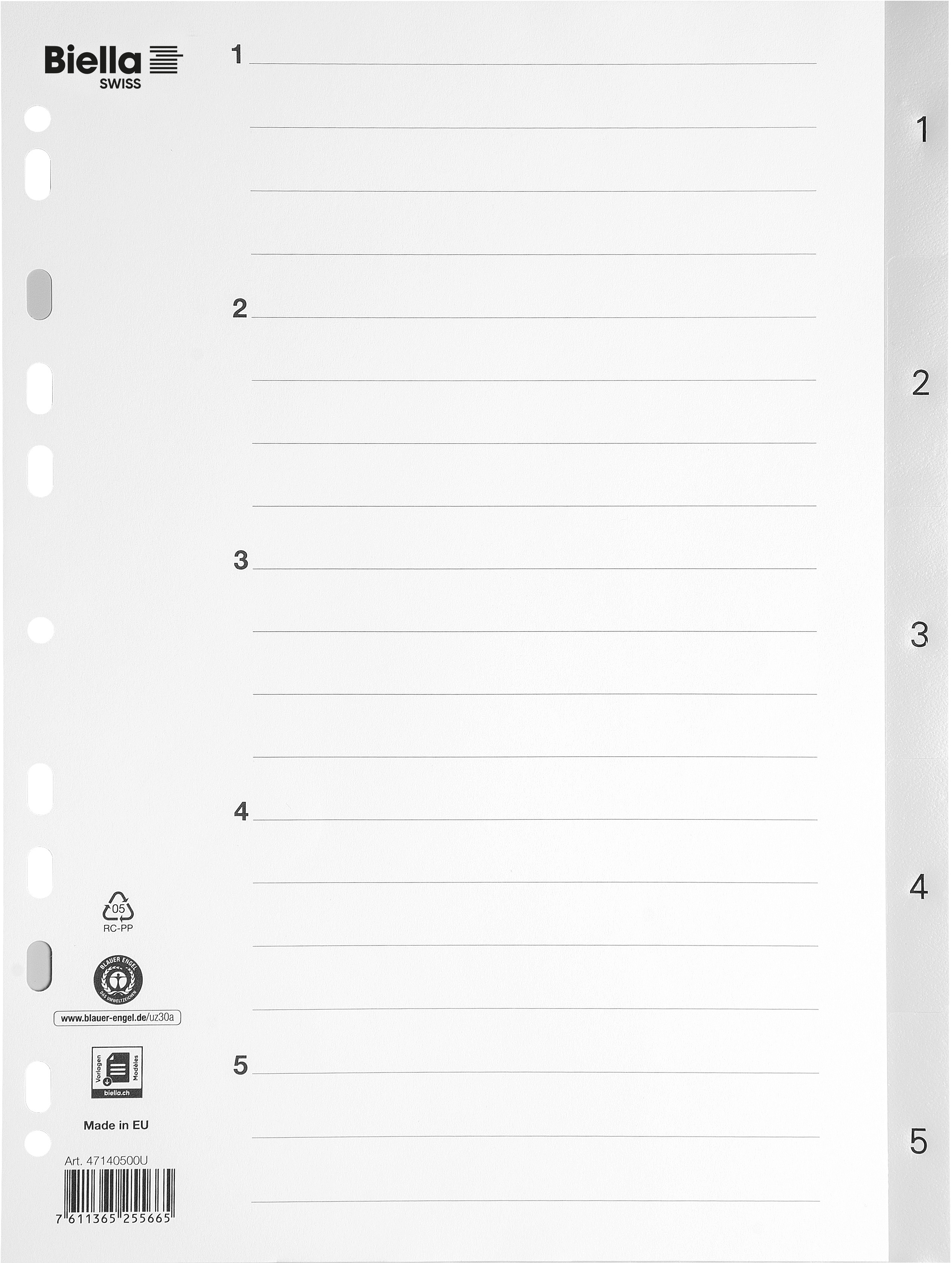 Les répertoires pratiques de Biella vous permettent de classer vos documents, rapidement et efficacement. Les onglets numérotés et l'index à inscription individuelle permettent de trouver rapidement vos documents.