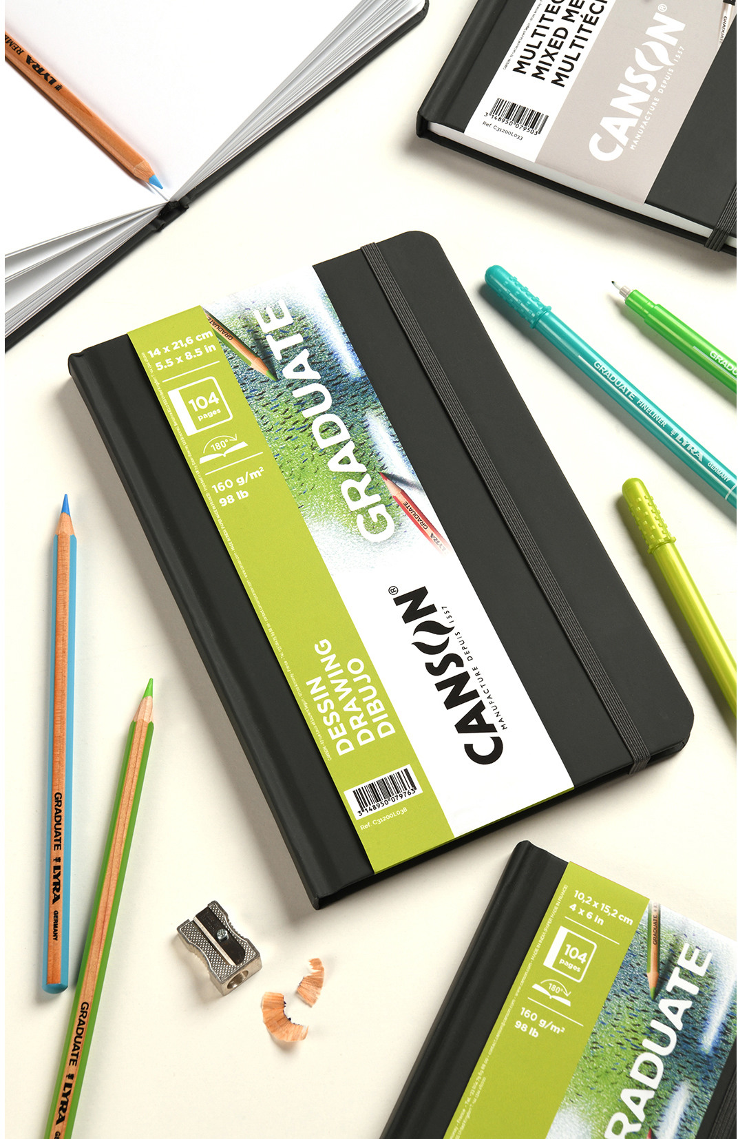 Avec son papier résistant au grain léger, le carnet de croquis Canson Graduate Dessin est idéal pour la réalisation de tous tes dessins et esquisses. Fusain, pastel, crayon, etc. Entraîne-toi et dessine tes plus beaux chefs-d'œuvre. Sa surface résistante supporte des gommages répétés sans perdre de sa qualité.