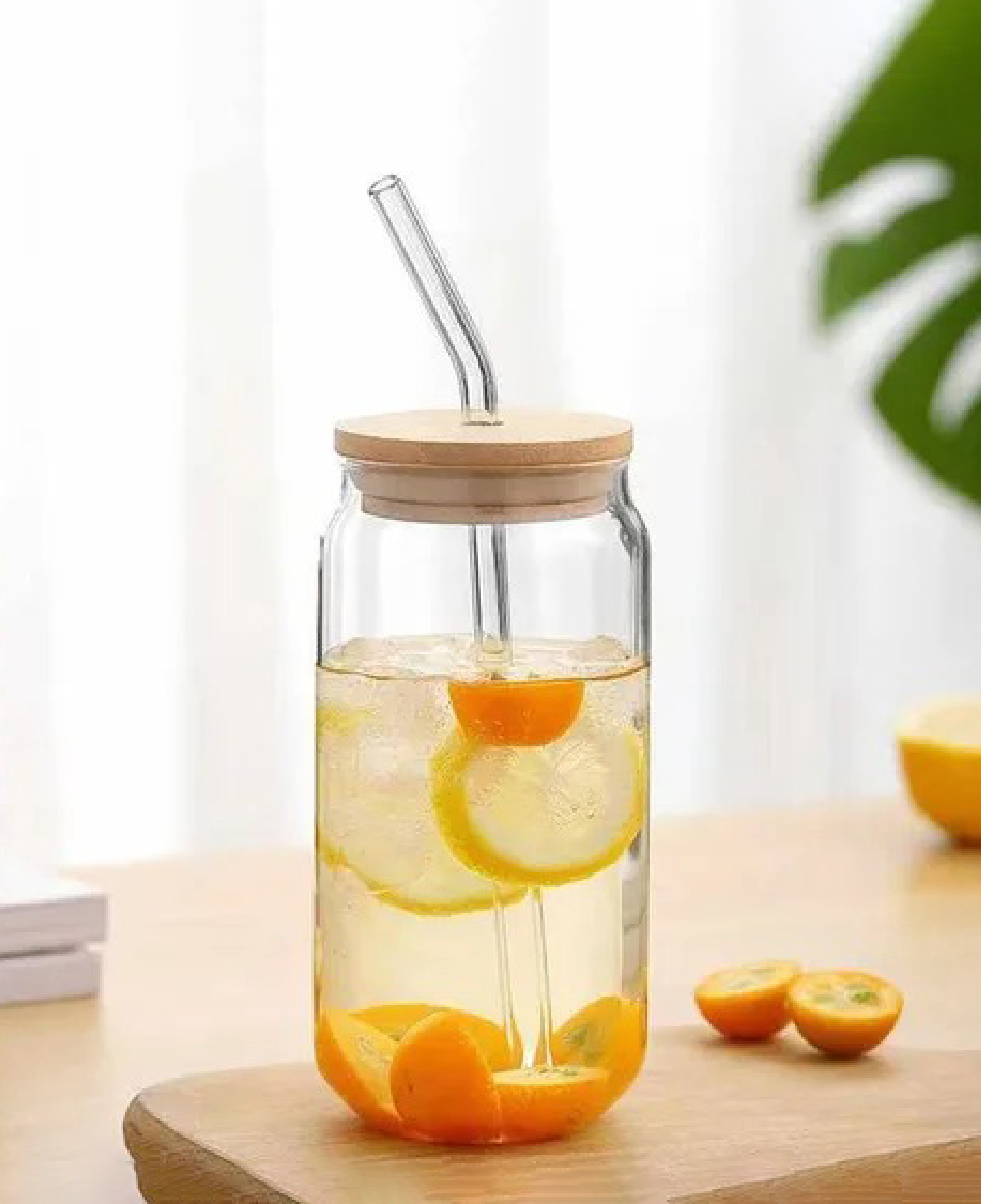 Avec notre verre à boire, chaque boisson froide est deux fois meilleure ! Le verre est livré avec un couvercle en bambou et une paille en verre et a une capacité de 540 ml. Le gobelet est idéal pour les cocktails, les limonades, le thé glacé ou le café glacé. Savoure ta boisson même en déplacement avec cette coupe pratique et stylée !