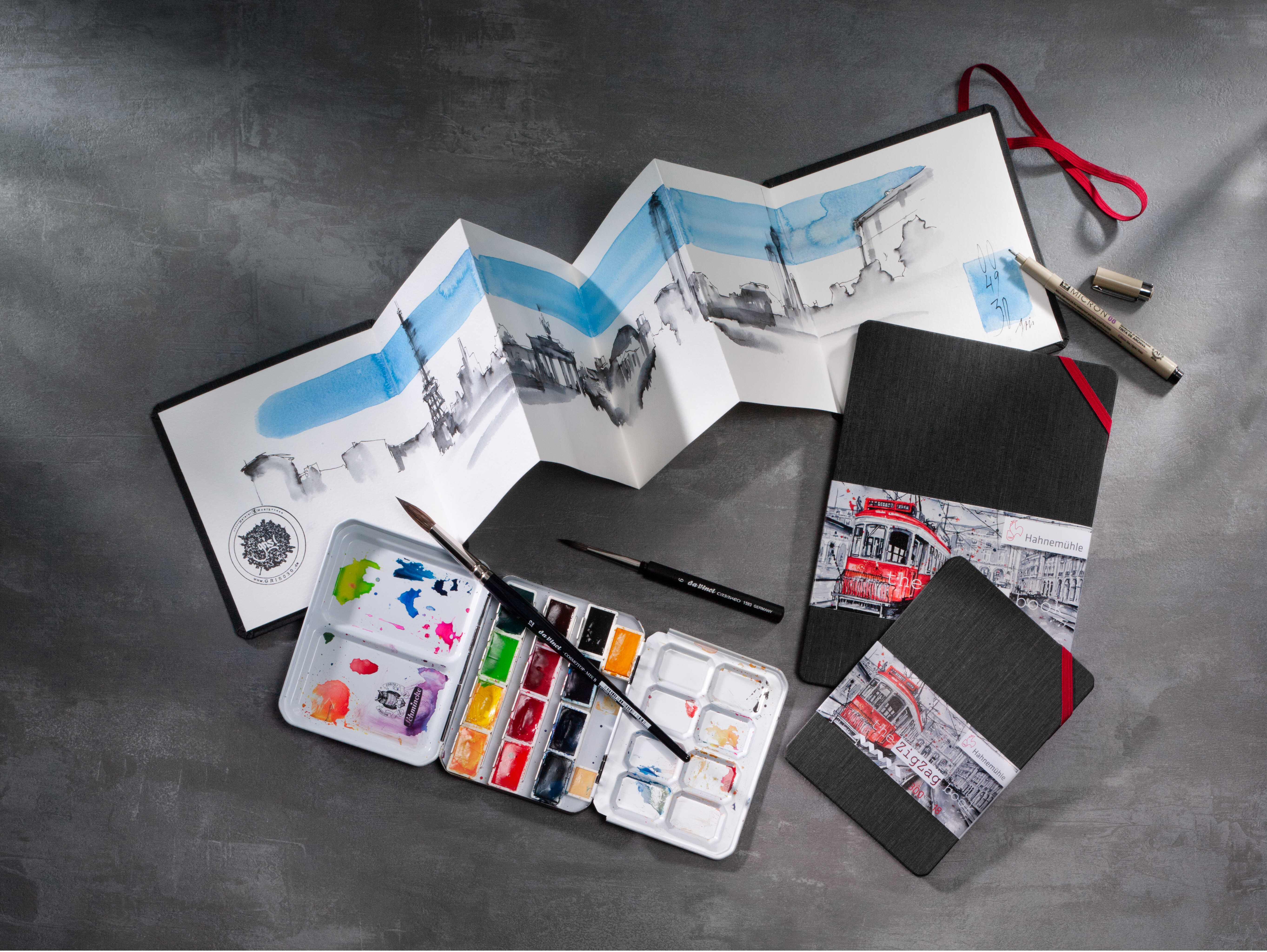 Das ZigZagBook von Hahnemühle ist ein kreatives Aquarellbuch mit einzigartiger Zickzack-Faltung, das sich ideal für Skizzen, Studien und Reiseillustrationen eignet. Mit 300 g/m² ist das Papier stabil genug für Aquarell-, Gouache- und Mixed Media Techniken. Die fein strukturierte, matte Oberfläche garantiert eine gleichmässige Farbaufnahme, während das innovative Faltformat vielseitige Präsentationsmöglichkeiten bietet.