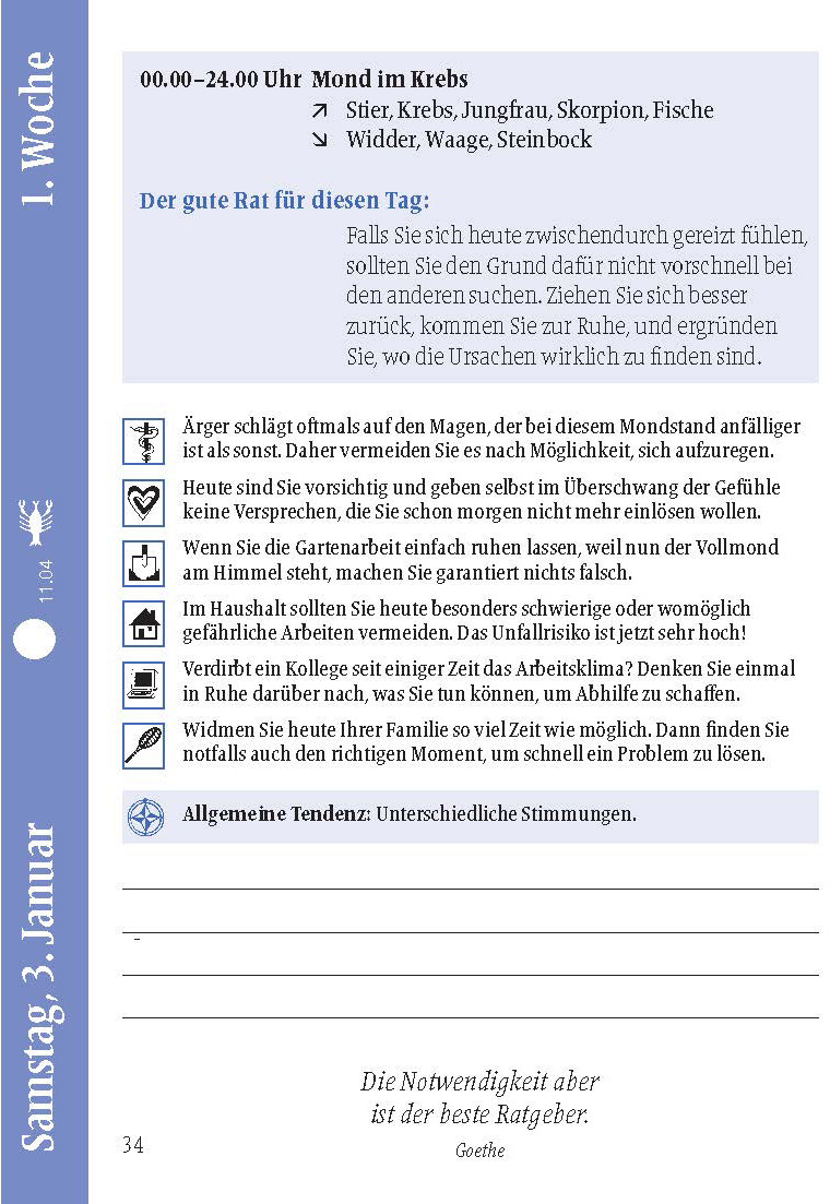 La Bible de la lune - le calendrier le plus complet de Helga Föger. Ce calendrier de poche lunaire possède un petit quelque chose en plus : si vous souhaitez en savoir plus sur le thème fascinant de l'influence de la lune sur notre vie que la plupart des calendriers ne peuvent vous offrir, vous êtes ici à la bonne adresse.
