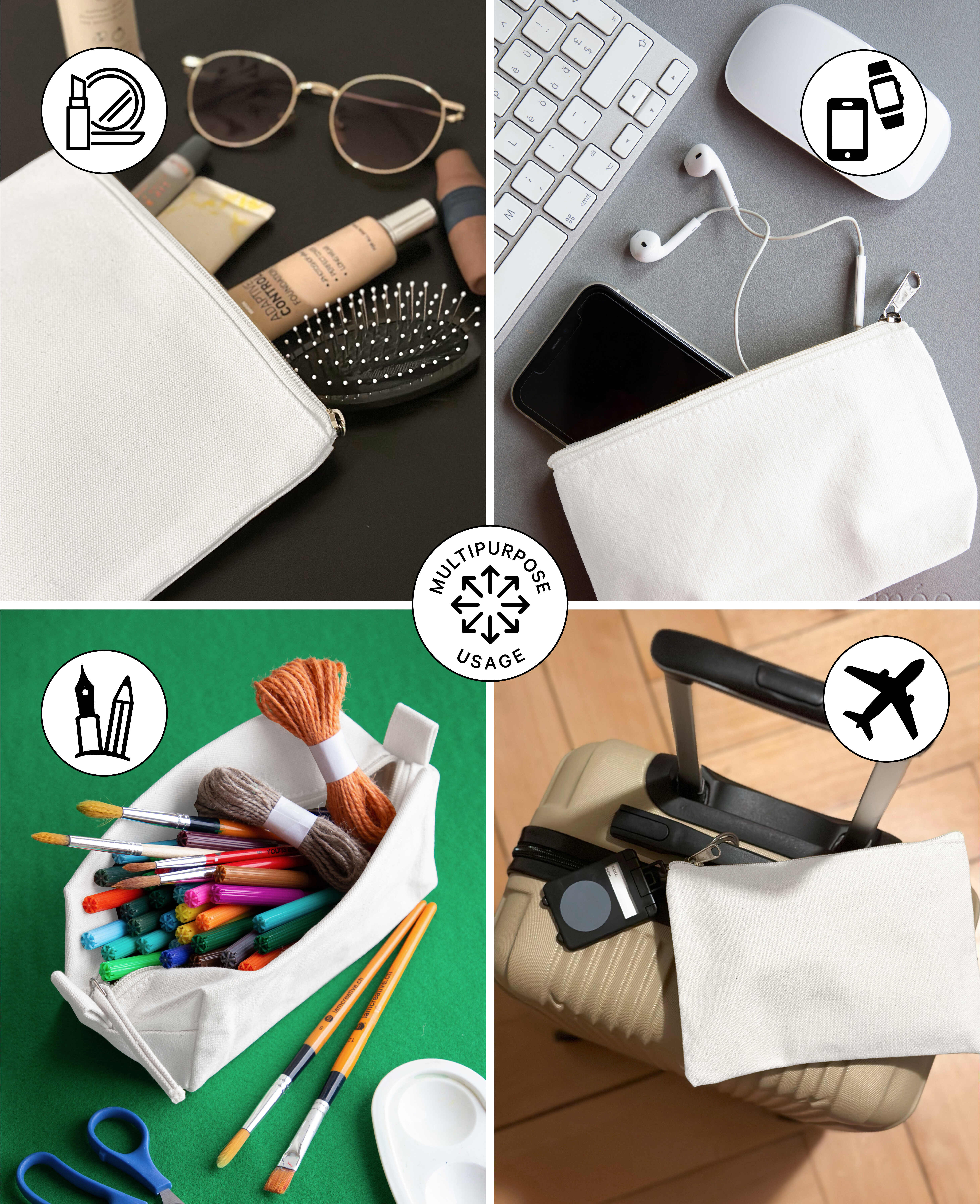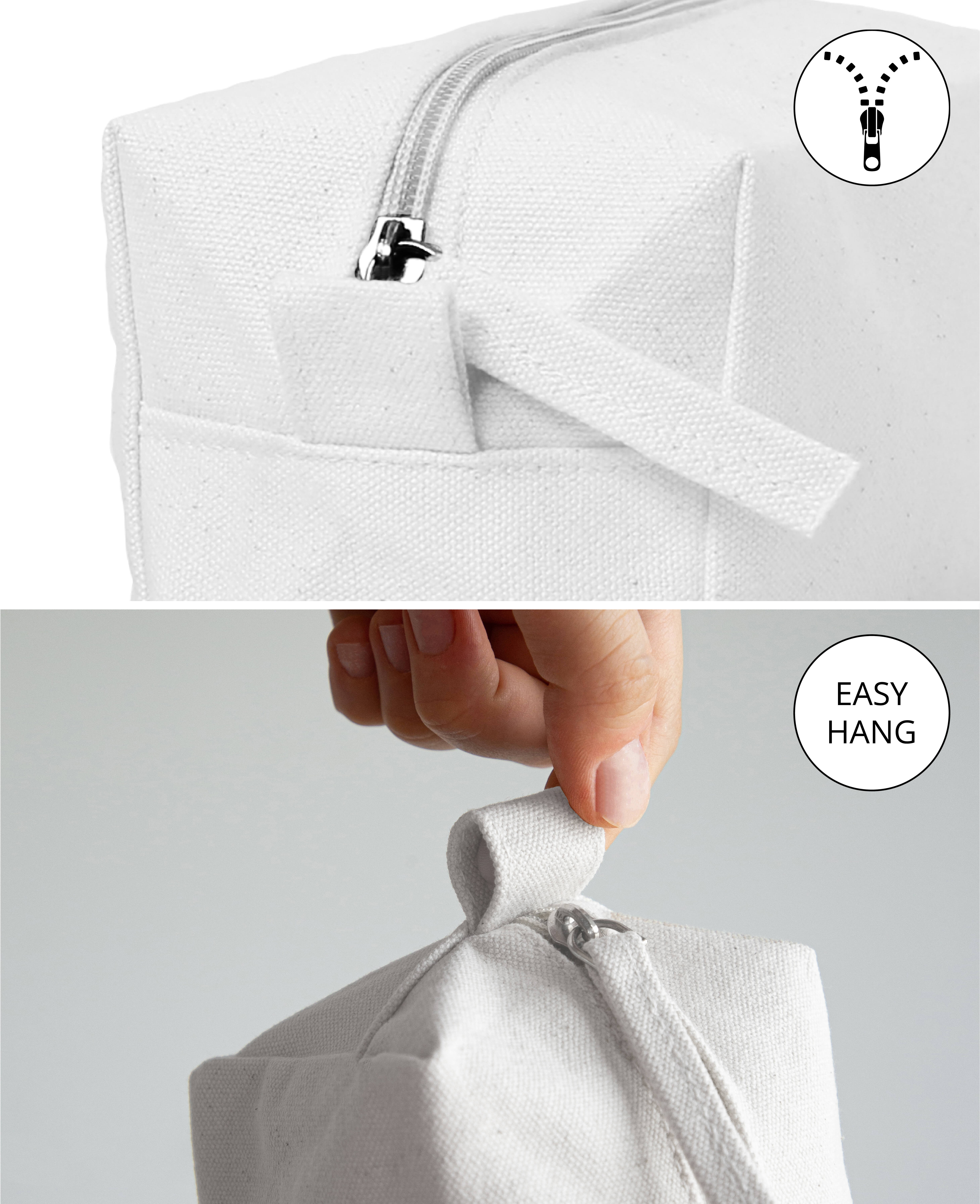 La trousse de toilette est un accessoire pratique pour les voyages ou l'usage quotidien. Fabriquée en coton de qualité supérieure dans un design uni, la trousse n'est pas seulement robuste et durable, elle est aussi idéale pour peindre et décorer. Que l'on imprime le tissu avec un tampon fait maison, que l'on laisse les petits enfants peindre avec de la peinture textile ou que l'on décore avec d'autres matériaux comme le liège, les résultats sont à chaque fois convaincants. Avec ses dimensions de 24 x 11,5 x 9 cm, il offre suffisamment de place pour tous les produits cosmétiques et d'hygiène. Bien sûr, il peut aussi très bien être utilisé comme étui pour les ustensiles d'écriture. La fermeture éclair veille à ce que rien ne tombe ou ne se perde.