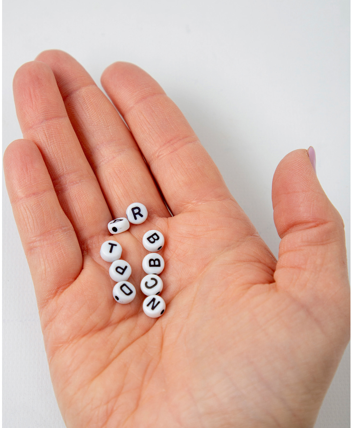 Perles pour bijoux, lettres, rondes, noir/blanc, 6 mm, 40 gr.