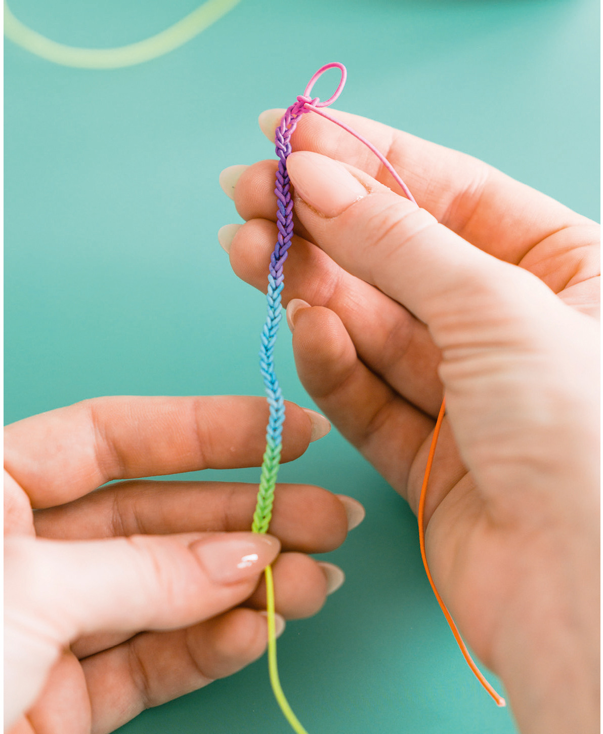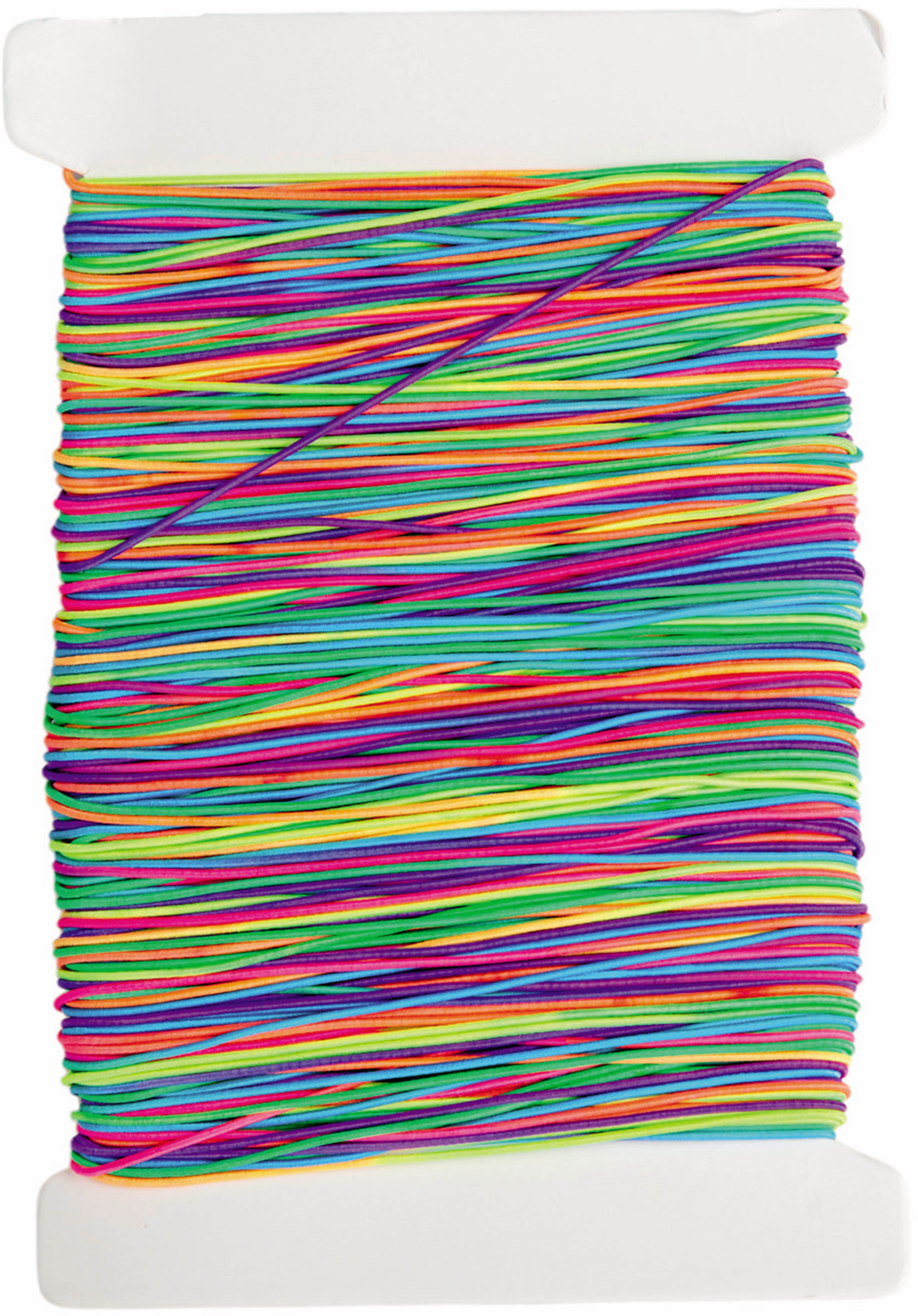Crée tes propres bijoux ! Avec ce ruban en nylon, tu peux laisser libre cours à ta créativité. Le cordon élastique a une longueur totale de 100 mètres et peut être découpé à volonté grâce à sa structure flexible. Le ruban peut également être utilisé pour le bricolage. Si tu veux fabriquer des bijoux Do it yourself comme des colliers ou des bracelets, le ruban avec un dégradé de couleurs arc-en-ciel est exactement ce qu'il te faut.