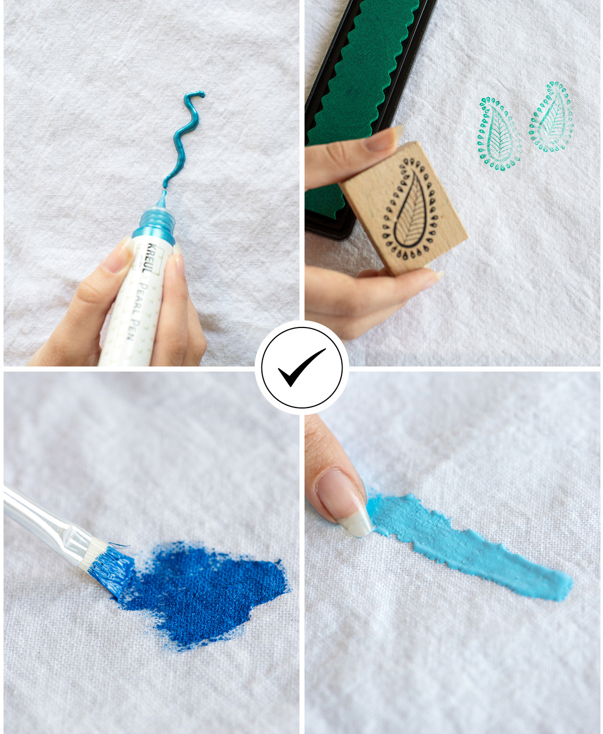 Les textiles permettent de réaliser de nombreuses et magnifiques idées créatives. Que l'on imprime le tissu avec un tampon fait maison, que l'on laisse les petits enfants peindre avec de la peinture pour textile ou que l'on décore avec d'autres matériaux comme le liège, les résultats sont à chaque fois convaincants. Découvre les possibilités illimitées que t'offrent les textiles !