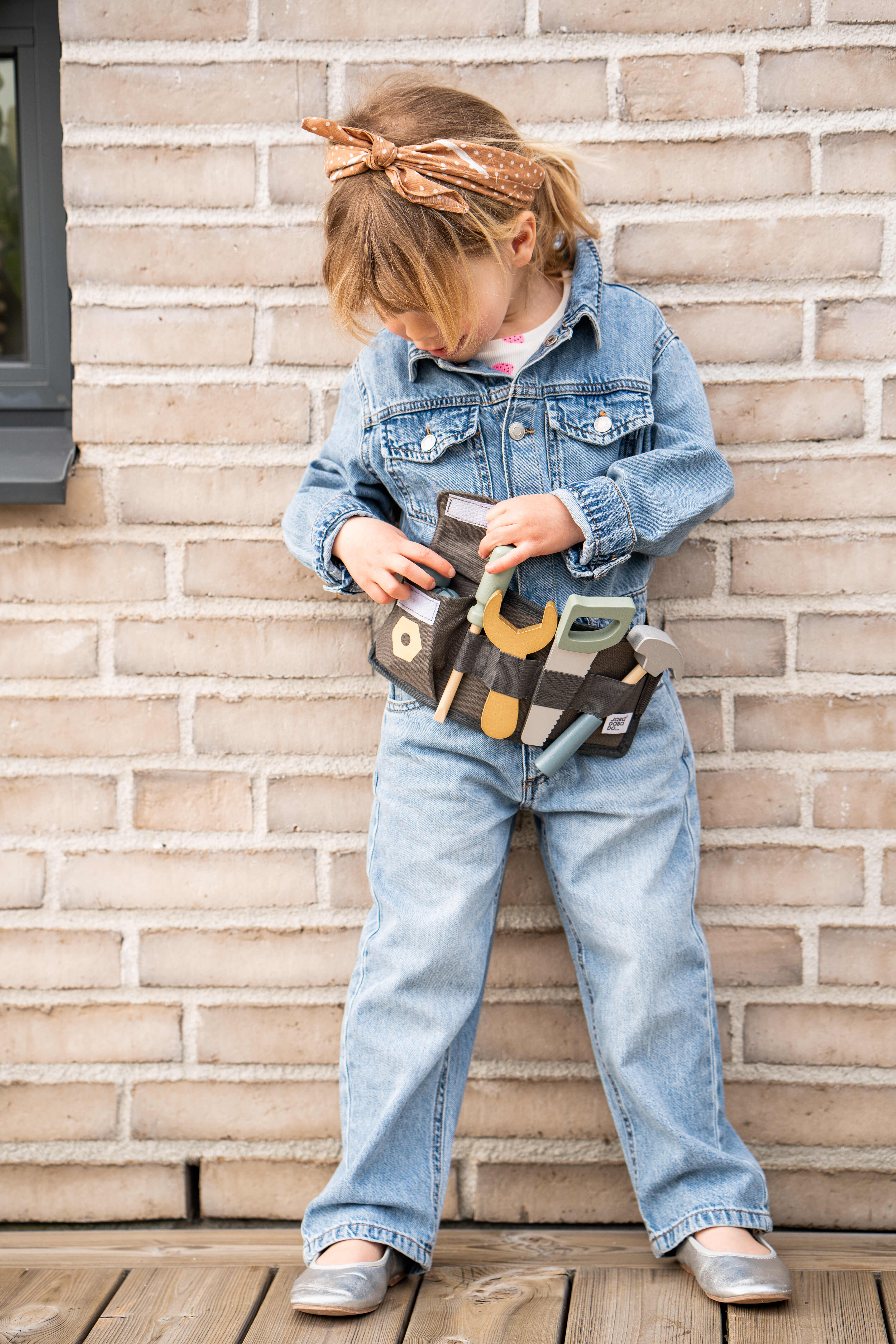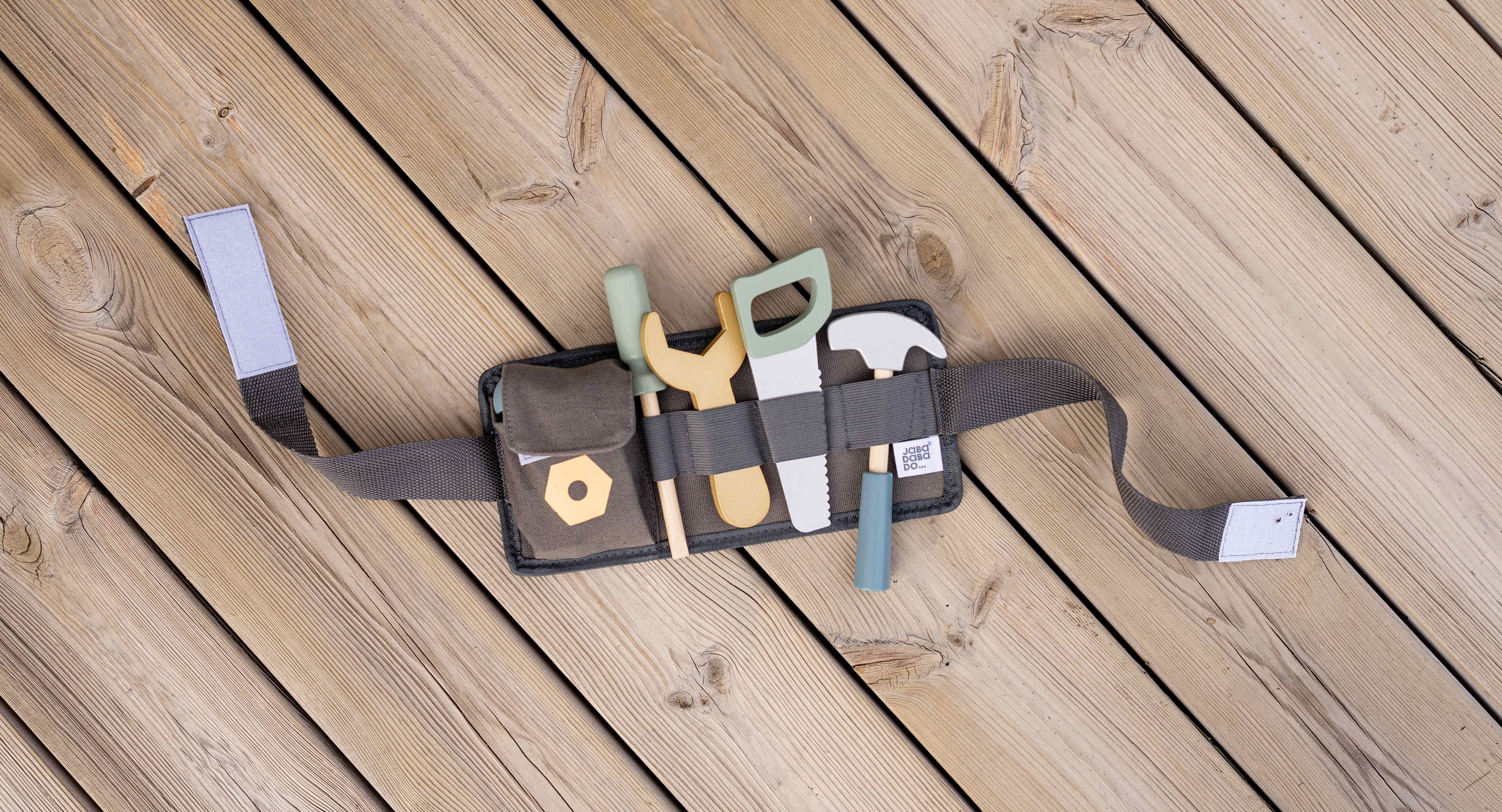 Ceinture de charpentier pratique pour les petits bricoleurs. Il est désormais possible d'aider à la maison en clouant et en martelant. Avec la ceinture de charpentier, votre enfant a tout ce qu'il lui faut. La ceinture est livrée avec une fermeture velcro qui se fixe facilement autour de la taille, et c'est parti pour les travaux manuels ! La ceinture se nettoie avec une éponge. Autorisé à partir de 18 mois. Fabriqué en bois certifié FSC™ (FSC™C194598).