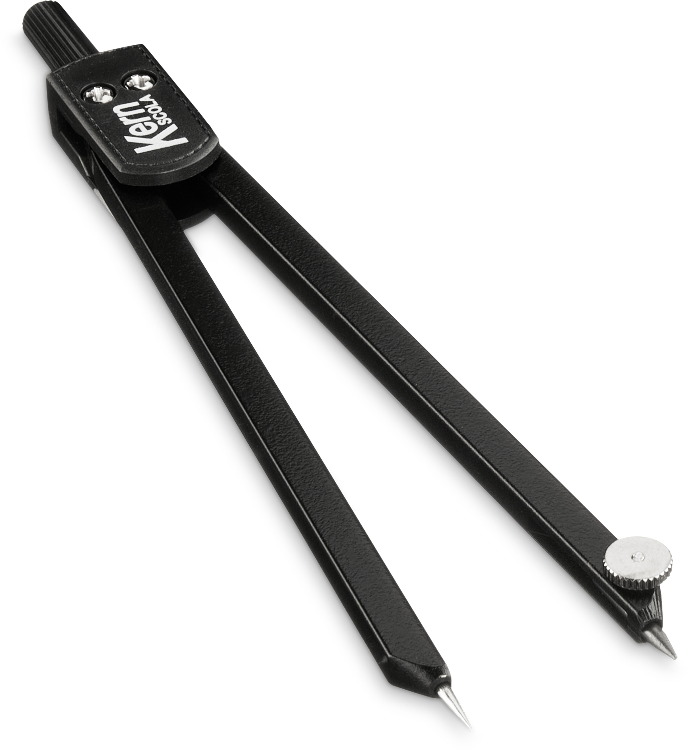 Compas Kern SCOLA, BLACK AND WHITE. Le compas de précision de haute qualité pour l'utilisation à l'école et à la maison dans de belles couleurs terre. Fabriqué selon des normes de qualité élevées et avec un design suisse / Tête du compas en thermoplastique / Branche en laiton avec surface nickelée / Longueur 13, 5 cm / Ø max. du cercle env. 300 mm / Boîte à mines avec 1 mine de plomb
