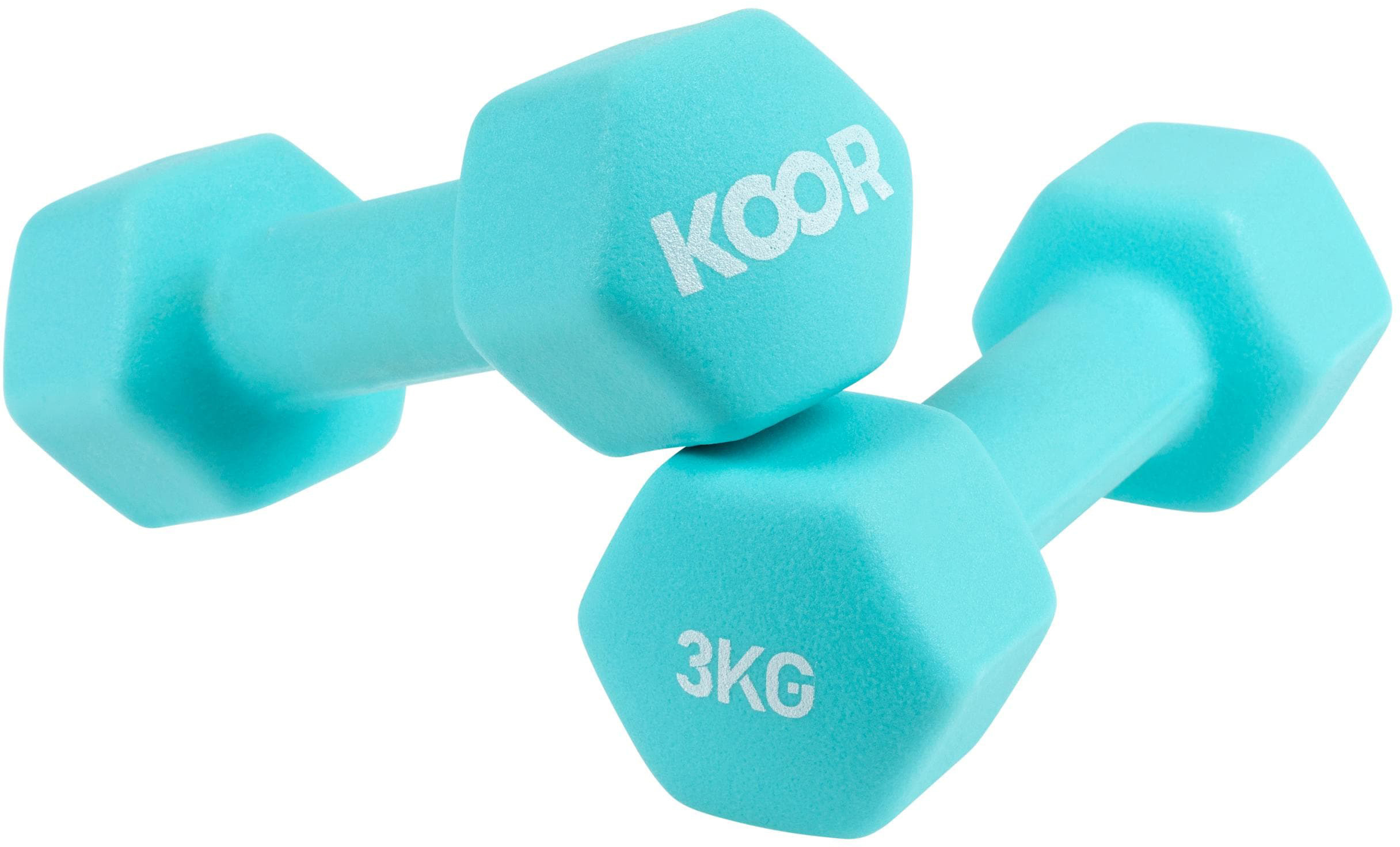 Deux haltères en fonte massive. Recouverts de PVC expansé particulièrement maniable.