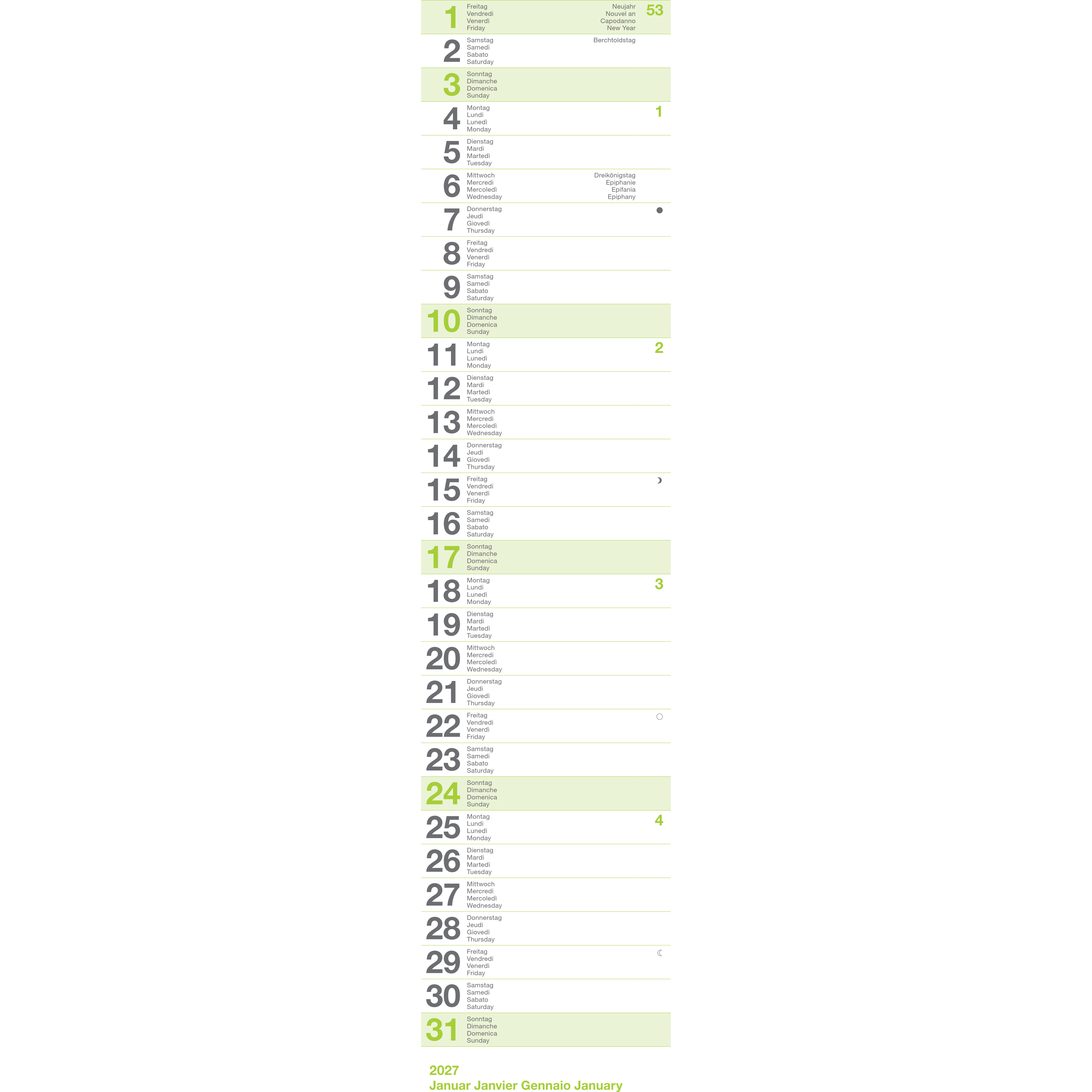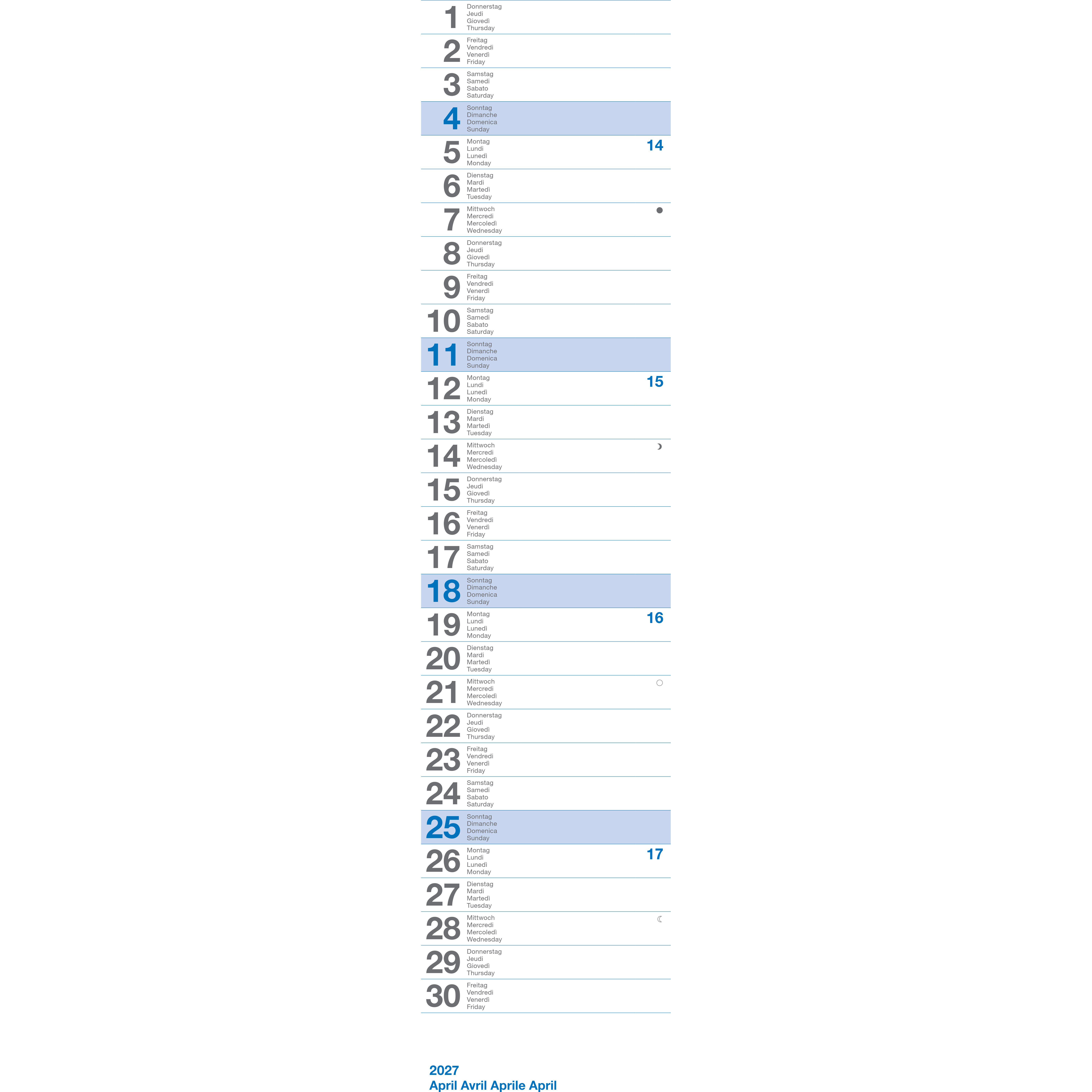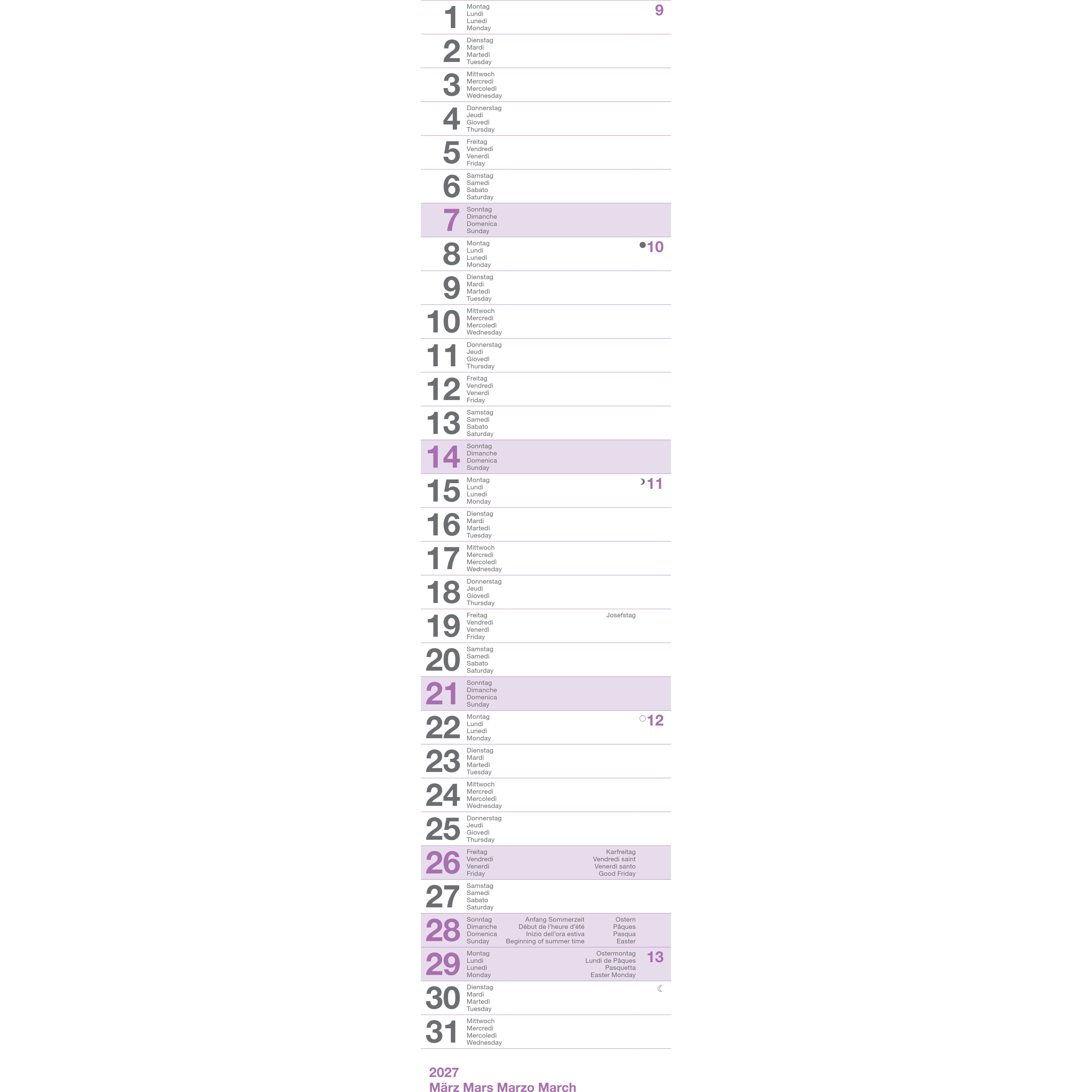 NOVOOO Planning mensuel 2027 88901900NO27U D/F/I/E 12x54.4cm