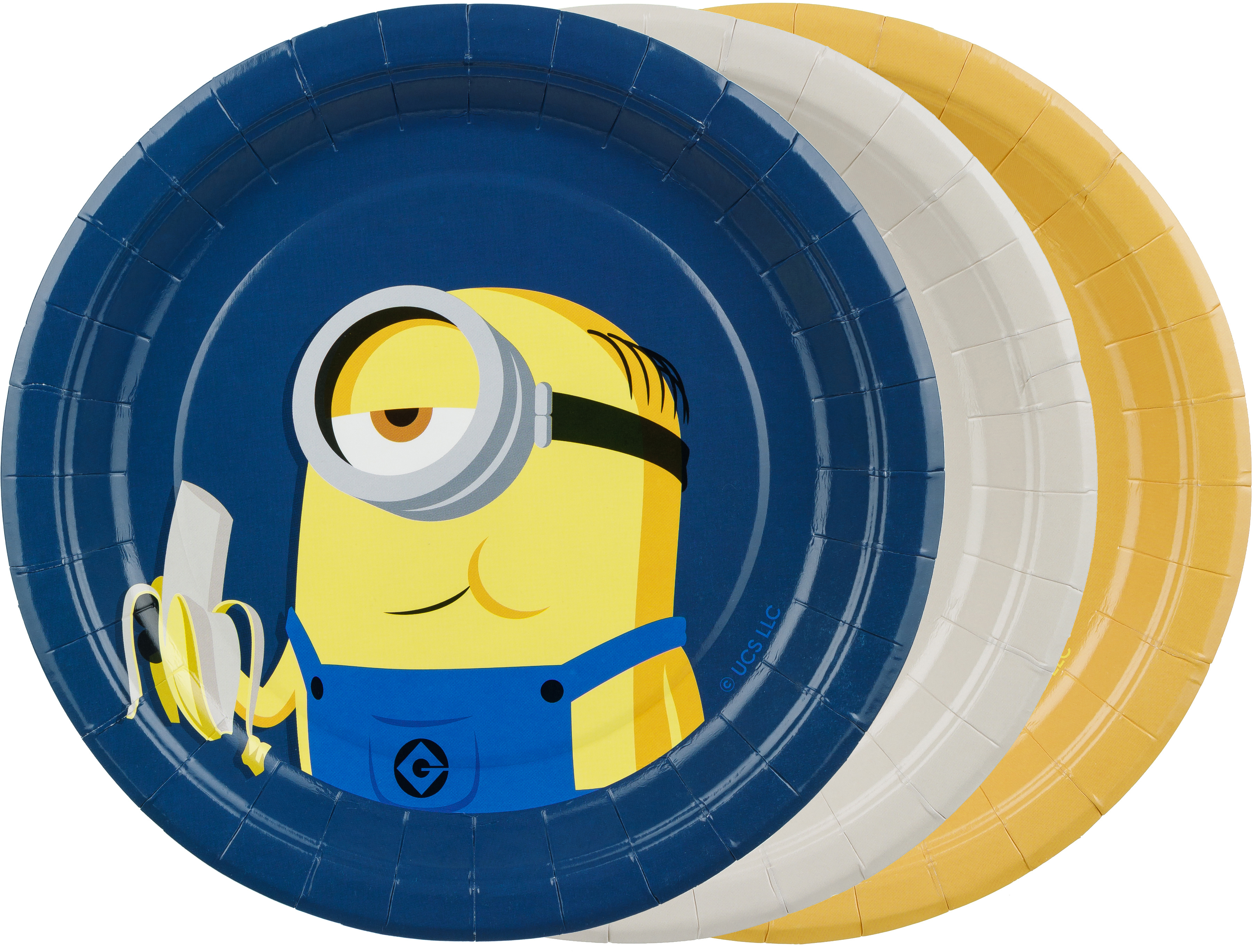 Assiette Minions, ronde, d'un diamètre de 18 cm, mélange de couleurs. Dans le paquet 3 designs 2 pièces chacun(1 UE / 6 pcs.)