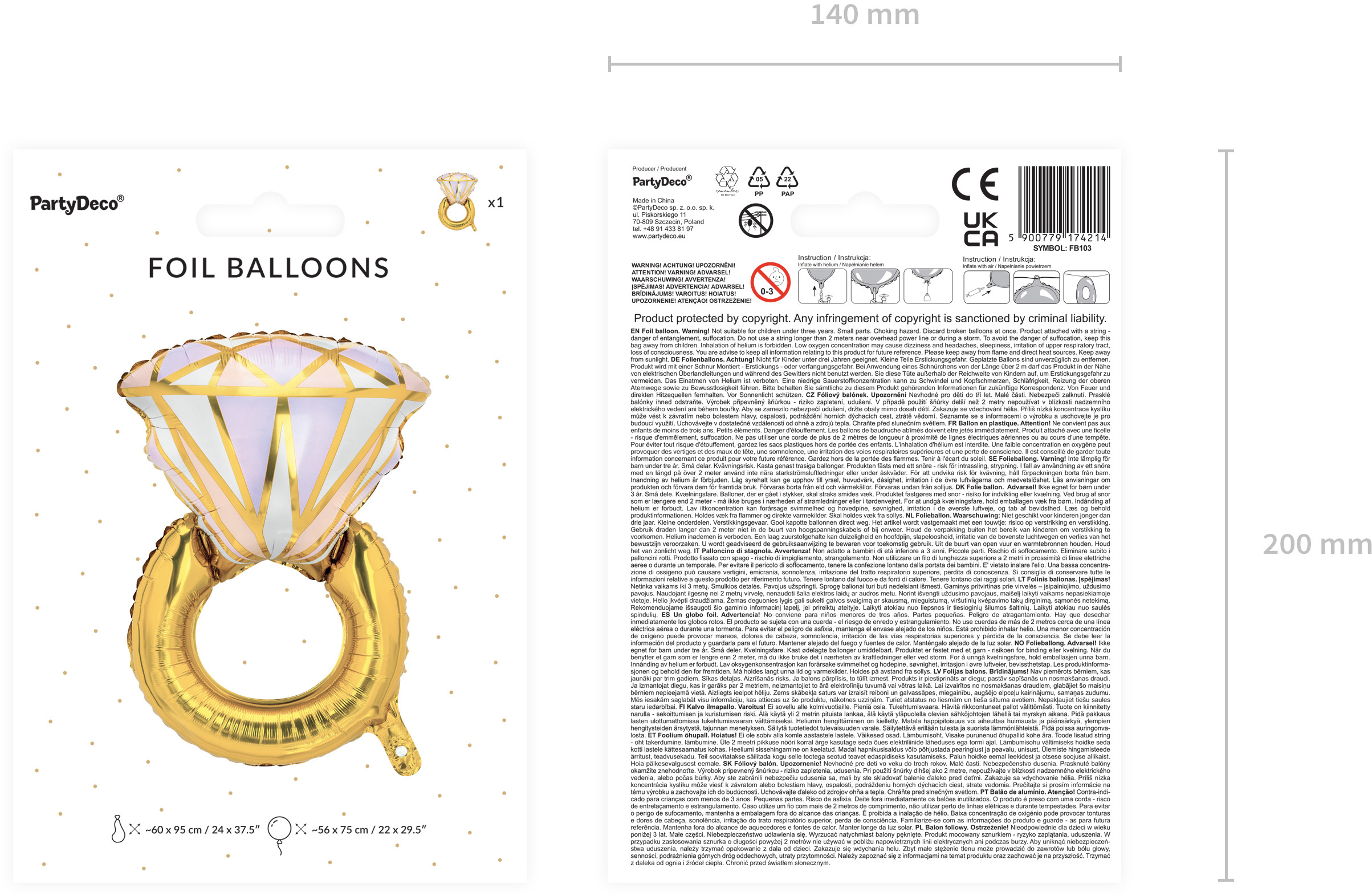 Ballon en plastique brillant en forme d'anneau, couleurs mélangées, dimensions : avant le gonflage env. 60 x 95 cm (24 x 37.5''), hauteur après le gonflage env. 56 x 75 cm (22 x 29.5''). A gonfler à l'air ou à l'hélium.