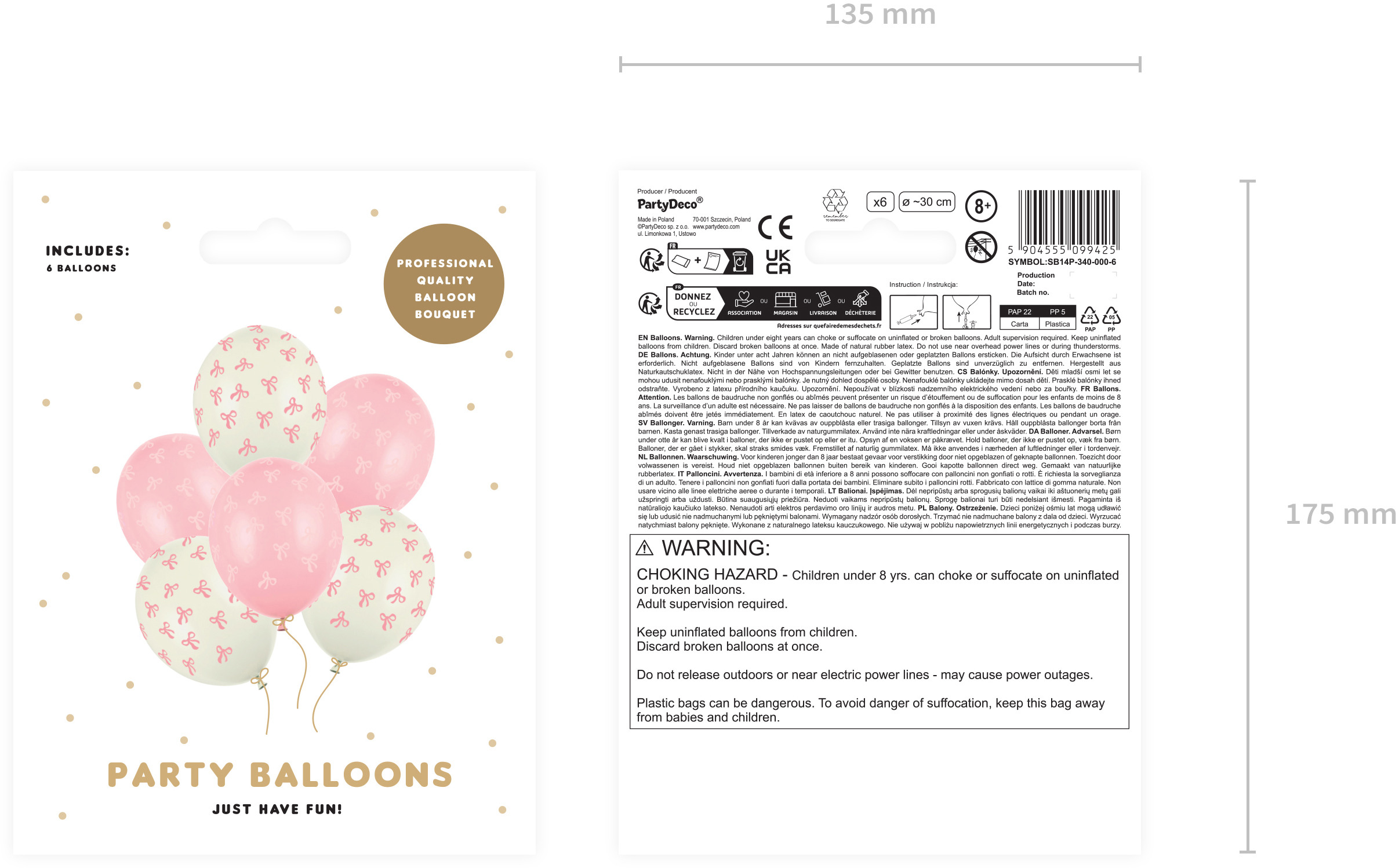 Ballons Strong Noeuds avec impression, le set contient 2 couleurs de ballons (Pastel Light Cream et Pastel Baby Pink) avec impression sur cinq côtés, diamètre environ 30 cm.(1 UE / 6 pcs.)