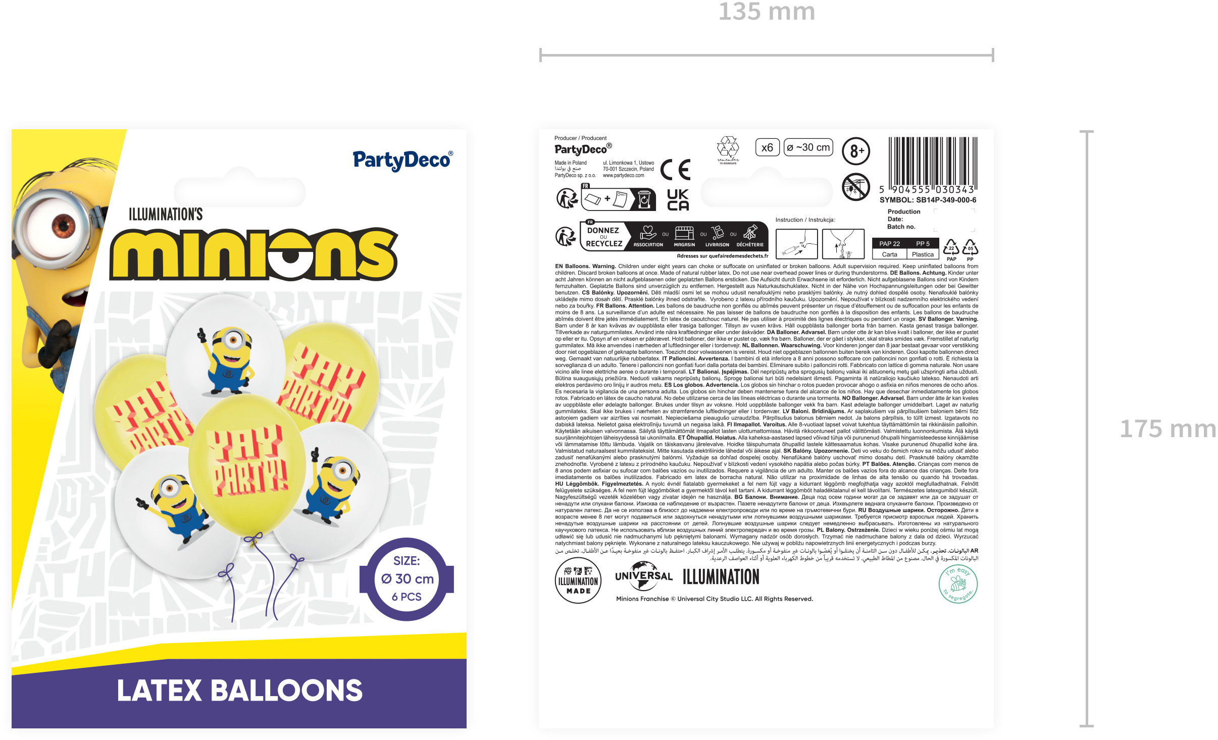 Ballons Minions Strong avec impression, diamètre 30 cm. Le set contient 6 ballons avec impression recto-verso, en deux designs : 3 pièces Minion (Pastel White) et 3 pièces Yay Party ! (Pastel Honey Yellow).(1 UE / 6 pcs.)