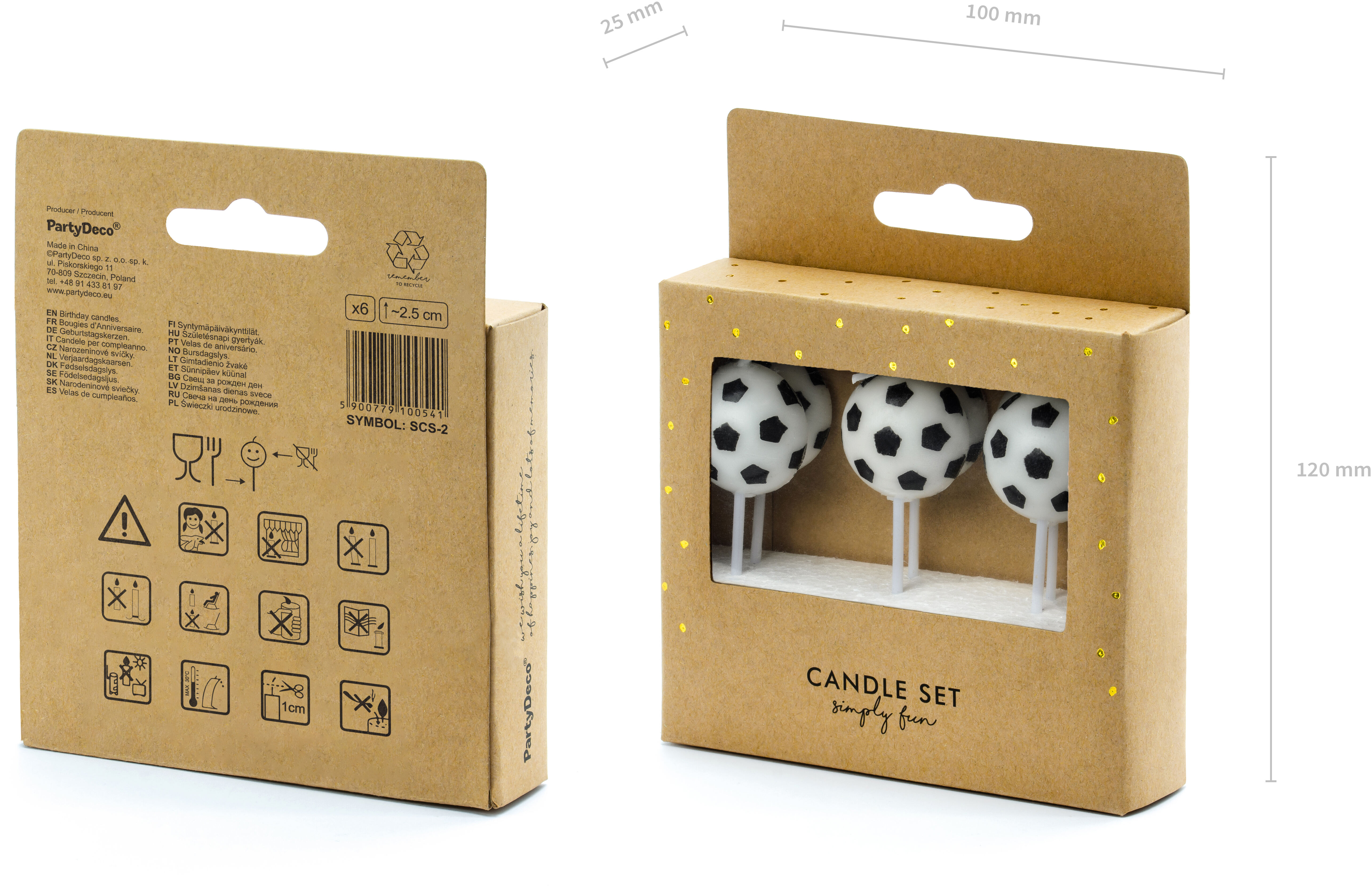 Bougies d'anniversaire en forme de balles, blanches et noires, hauteur env. 2,5 cm.(1 UE / 6 pcs.)