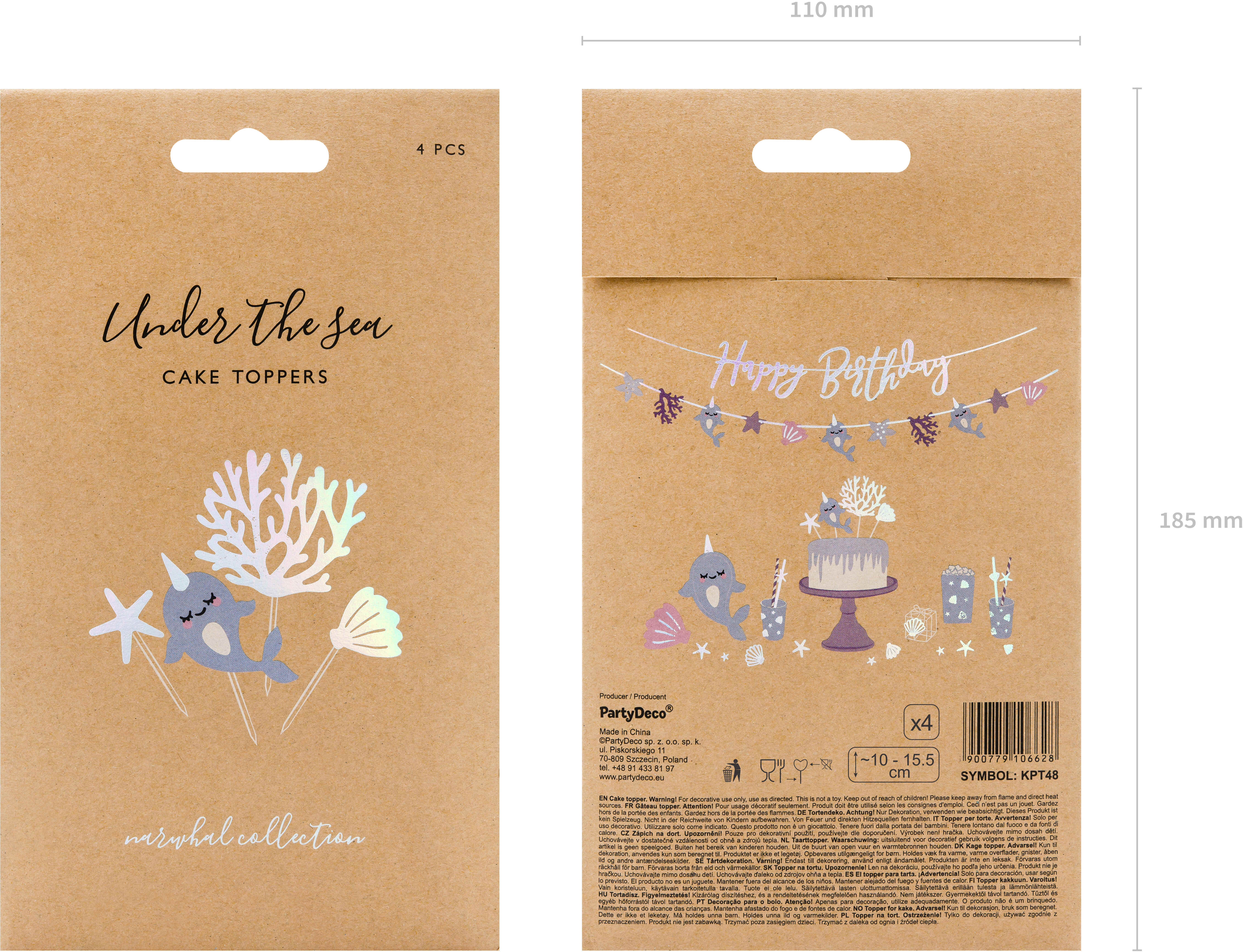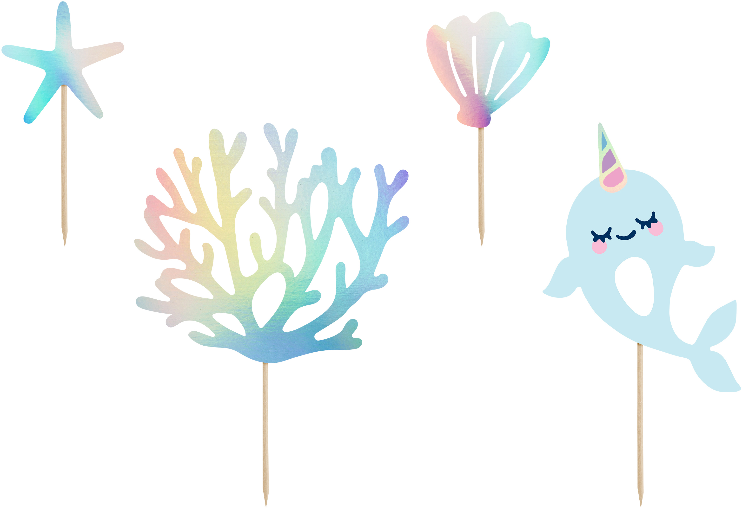 Caketopper Narval, mélange de couleurs et de designs, le set contient 4 toppers sur sticks, hauteur d'environ 10 cm à environ 15,5 cm.(1 UE / 4 pcs.)