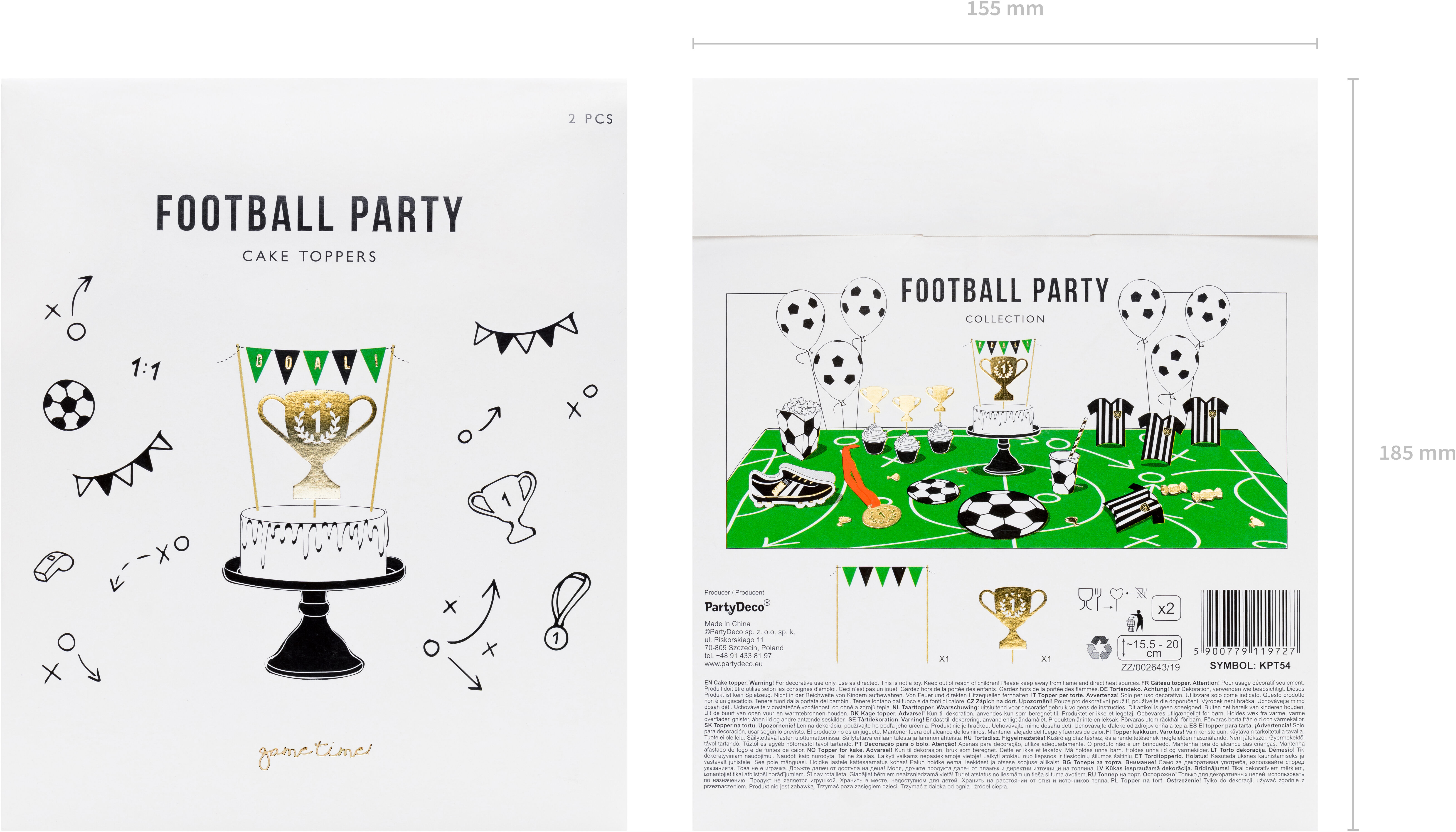 Caketopper Ball, motifs et couleurs mélangés, le set contient 2 embouts sur sticks - trophée et drapeaux avec le mot Goal !, hauteur d'environ 15,5 à environ 20 cm.(1 UE / 2 pcs.)