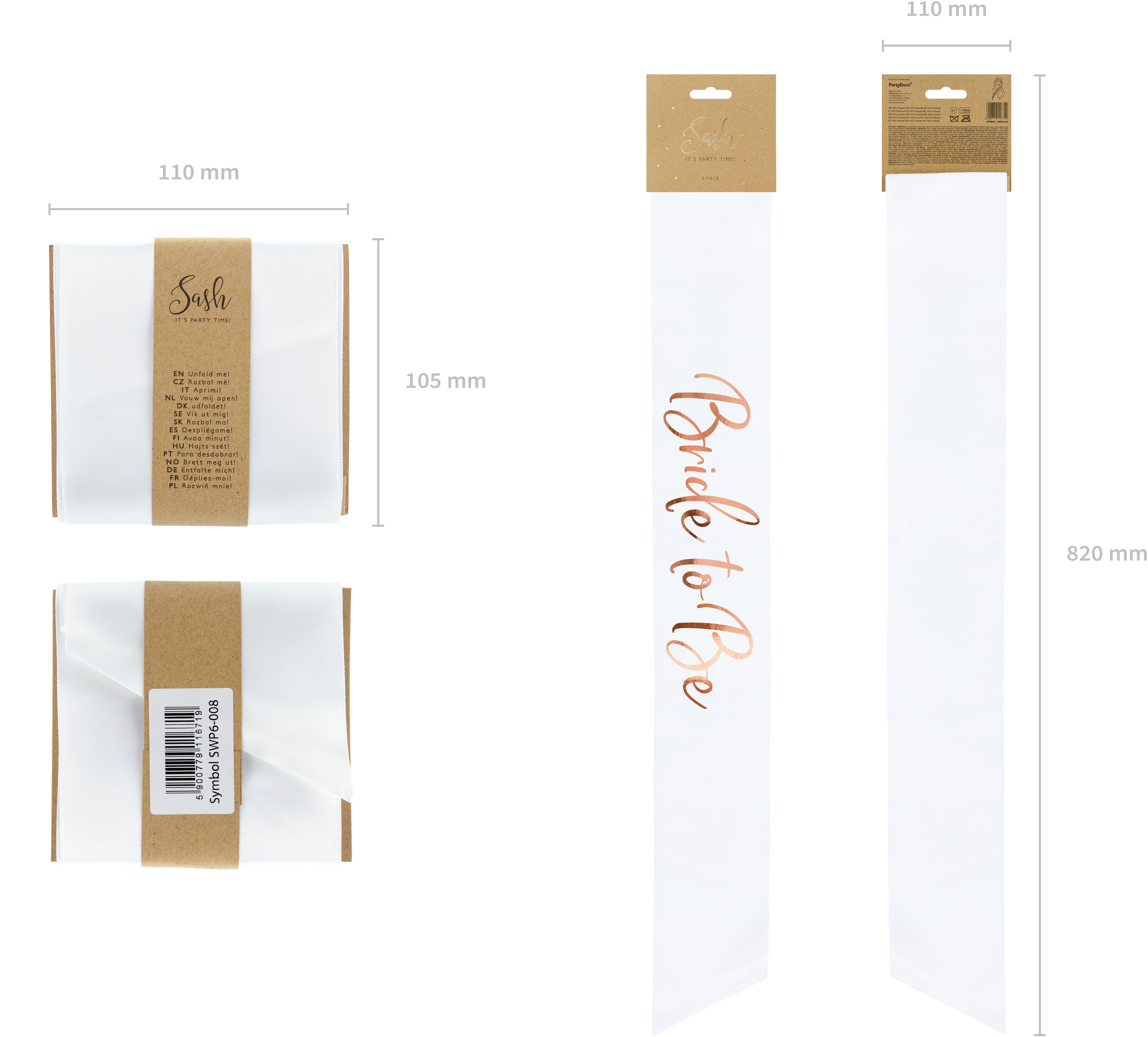 Écharpe en satin Bride to be en blanc avec impression métallisée en or rose, env. 10 cm de large, env. 75 cm de long.