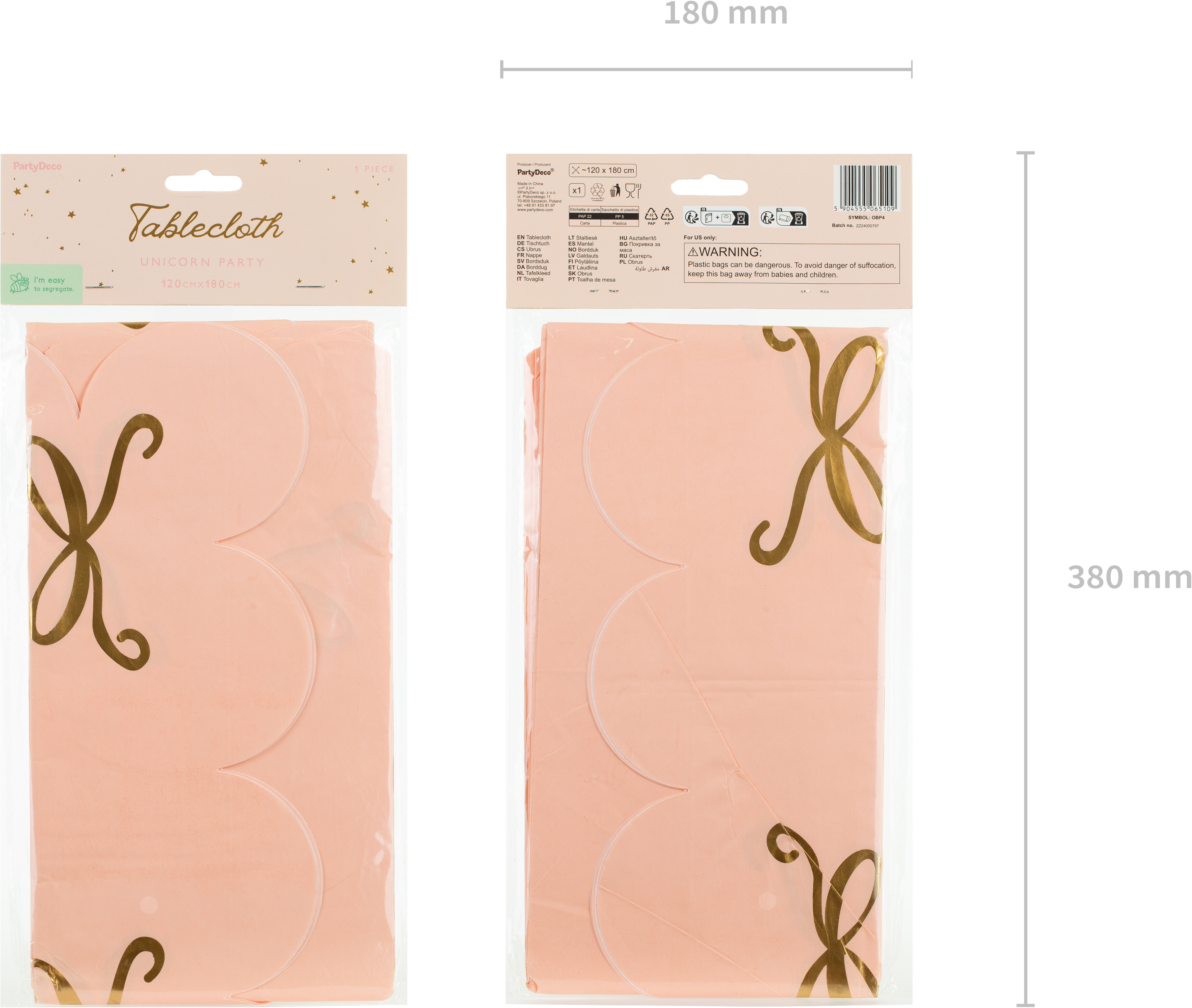 Nappe en papier avec impression dorée à Bows, rose, taille 180 x 120 cm