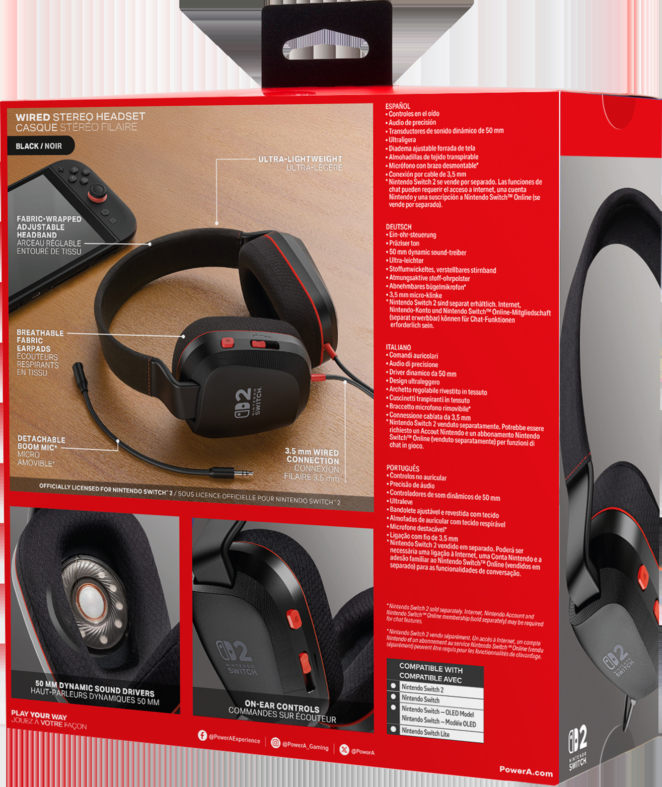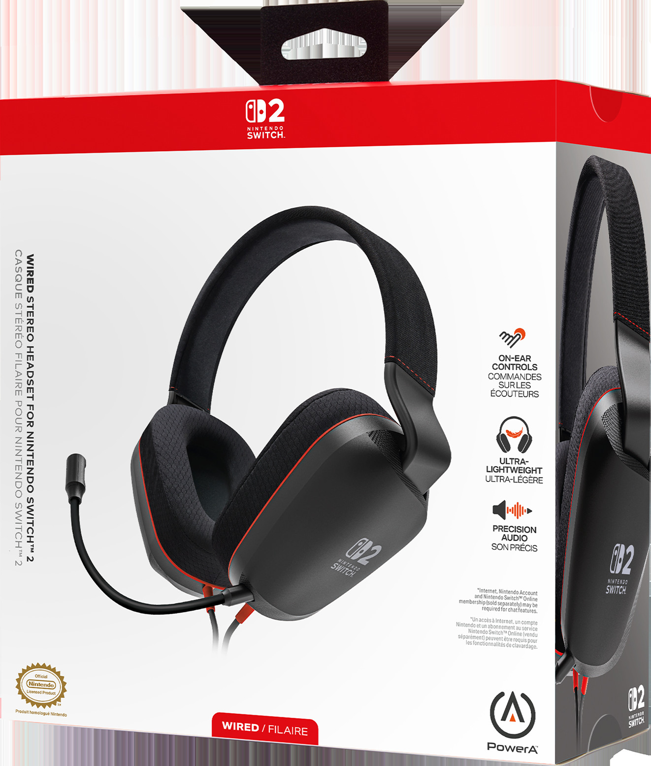 Jouez à vos jeux préférés avec un casque confortable et stylé. Le casque stéréo filaire PowerA pour Nintendo Switch 2 est sous licence officielle et convient super bien pour jouer ou écouter de la musique. Conçu pour un confort maximal, ce casque est doté d'un cadre ultraléger, d'écouteurs respirants recouverts de tissu et d'un serre-tête réglable. Le casque dispose à la fois de haut-parleurs dynamiques de 50 mm pour une expérience de jeu et de chat vocal claire et d'un microphone à arceau amovible pour un transport facile. Règle le volume du casque à l'aide du bouton de réglage du volume et coupe le microphone à l'aide du bouton de coupure du son via la commande sur les oreilles. Se connecte à la console Nintendo Switch 2 via le port 3,5 mm.