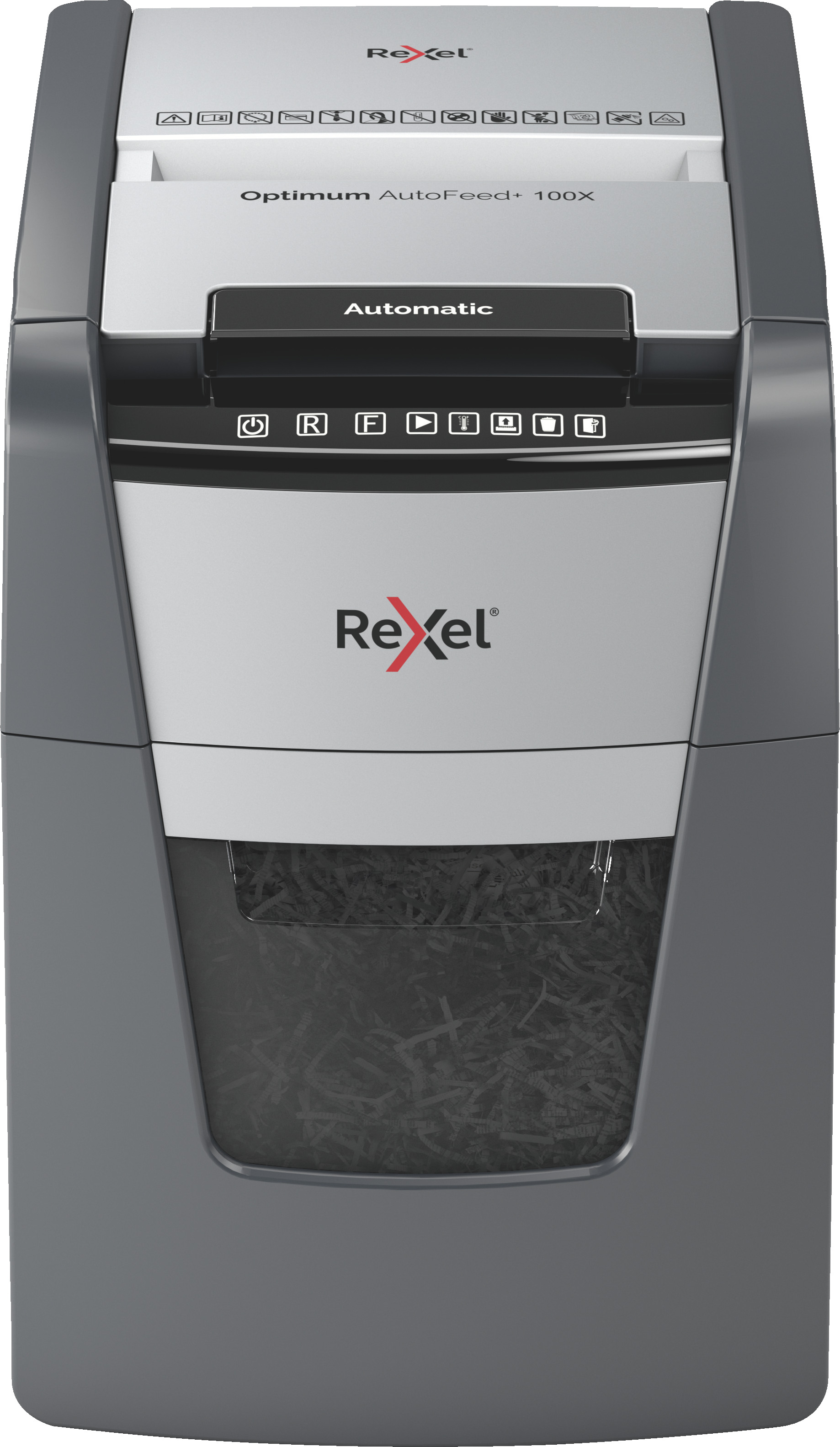 Optimum AutoFeed+ 100X Destructeur automatique de documents, 100 feuilles automatique, niveau de sécurité P4, coupe croisée, petit bureau et bureau à domicile, corbeille de 34 litres, 2020100XCH