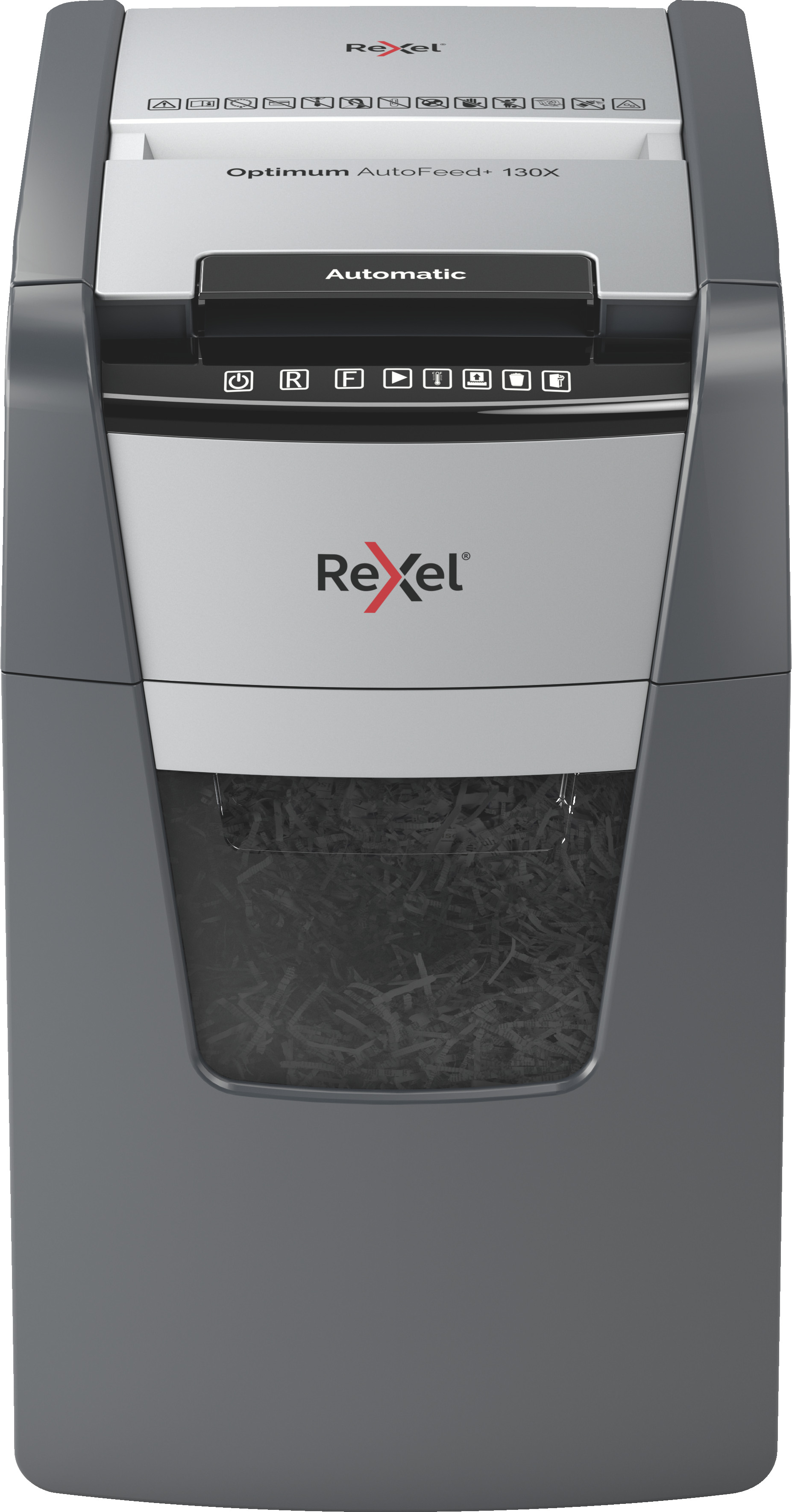Le destructeur à coupe croisée Optimum AutoFeed+ 130X détruit automatiquement jusqu'à 130 feuilles de papier A4 (80 g / m²) en un seul passage au niveau de sécurité P4 petites particules (4 x 28 mm). Ce destructeur AutoFeed est idéal pour une utilisation au bureau grâce à sa corbeille extractible compacte de 44 litres. Vous n'avez pas besoin d'introduire manuellement le papier un par un ni d'enlever les agrafes ou les trombones. Il fait tout le travail pour vous.