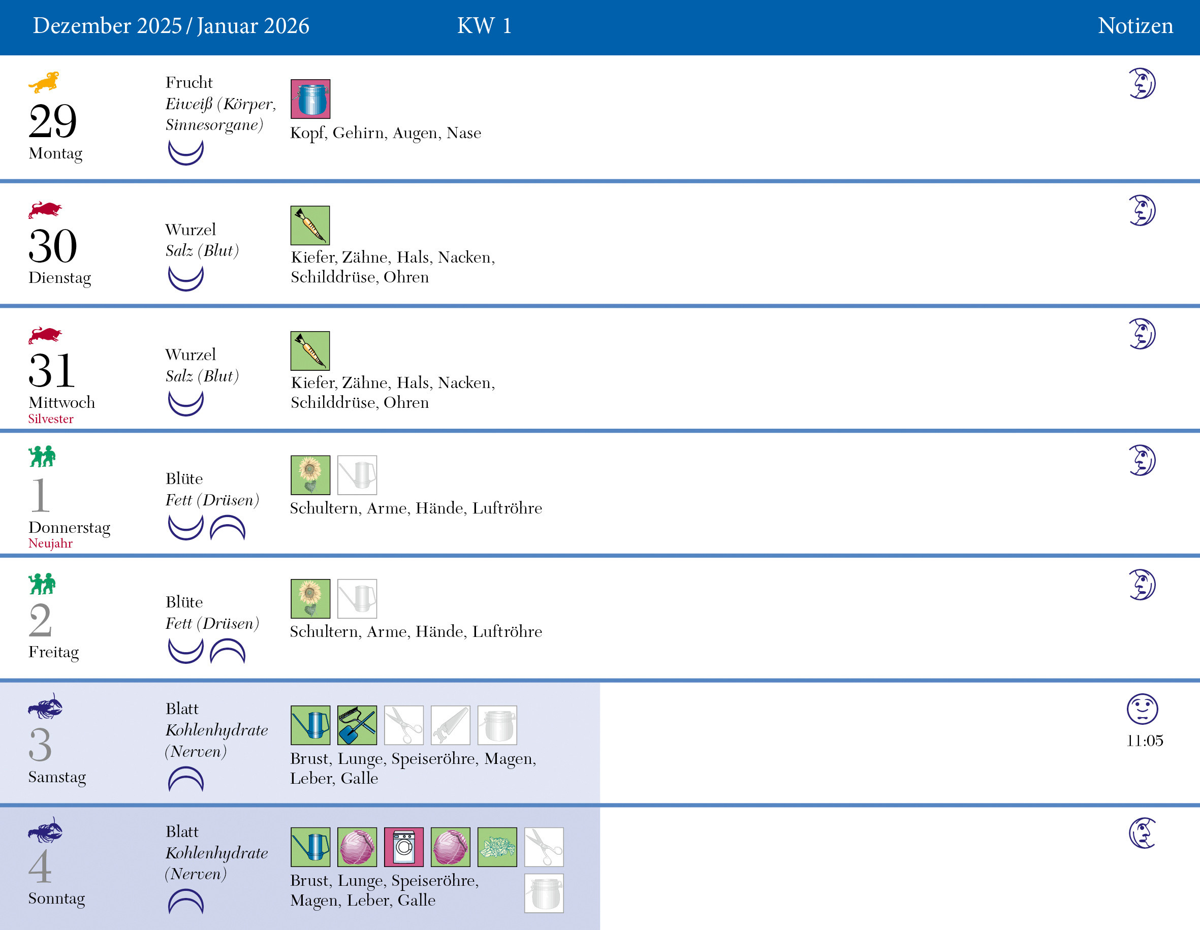 Le meilleur moment pour se couper les cheveux, jeûner ou faire du bien à son corps dépend de la position de la Lune dans le signe du zodiaque. L'utiliser et planifier au mieux ses activités ménagères et de jardinage permet de