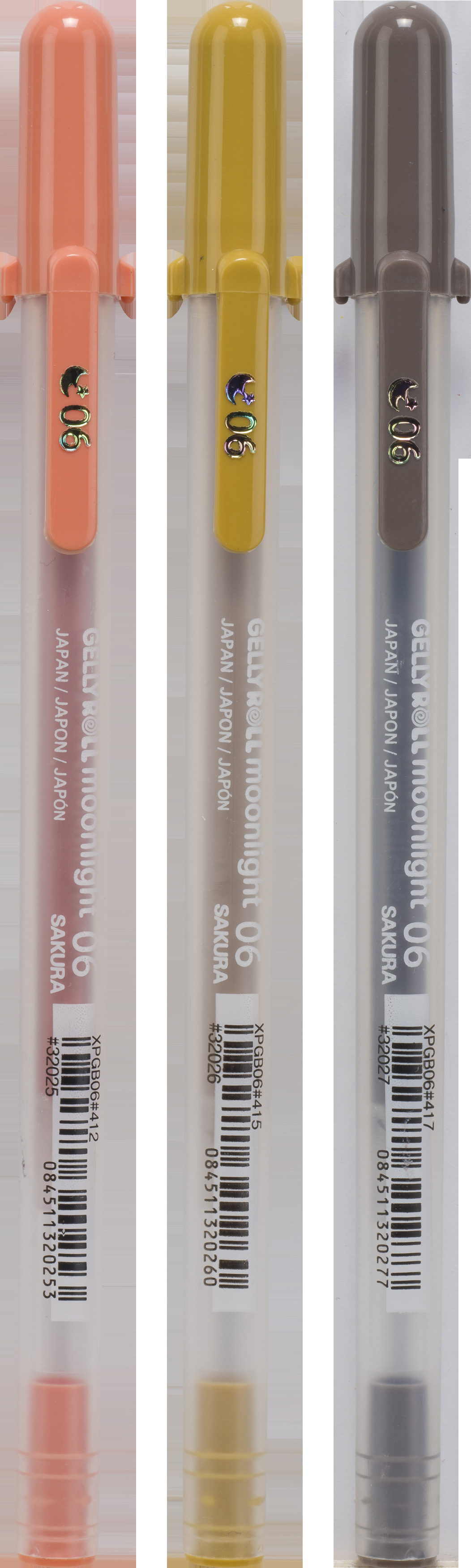 Ein Set mit drei Gelly Roll 06 (Strichbreite 0,35 mm).