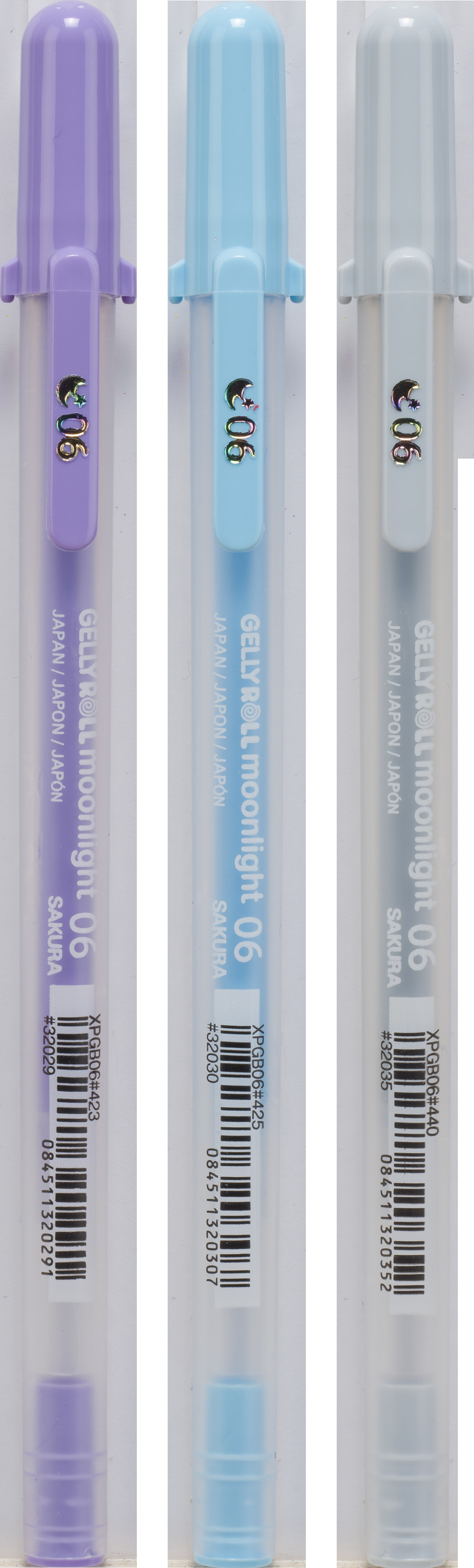 Ein Set mit drei Gelly Roll 06 (Strichbreite 0,35 mm).