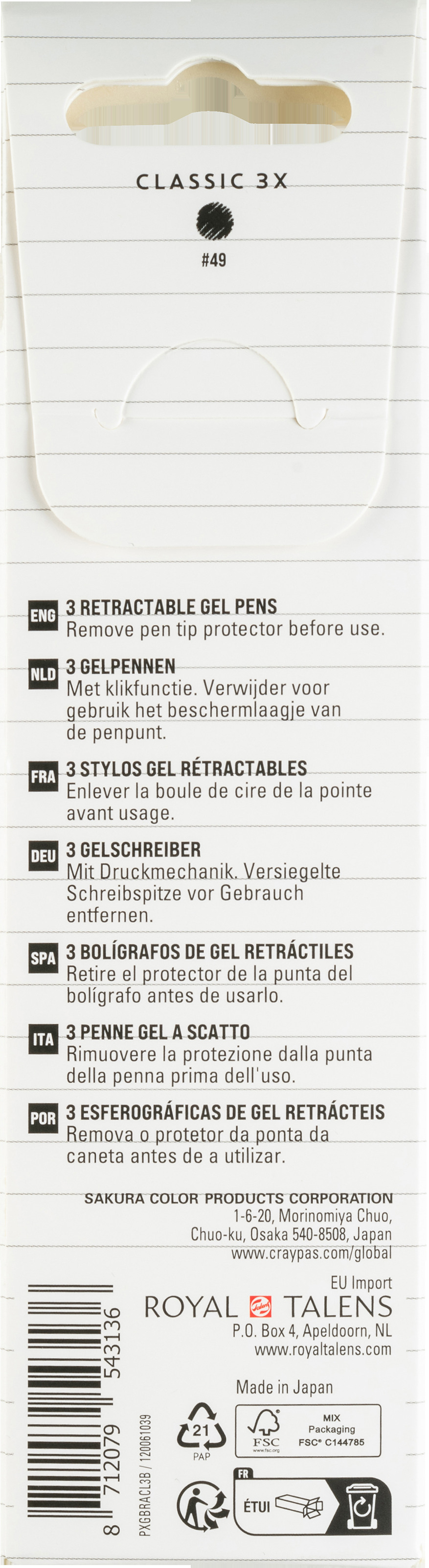 SAKURA Gelly Roll 0.8mm PXGBRACL3B noir 3 pièces