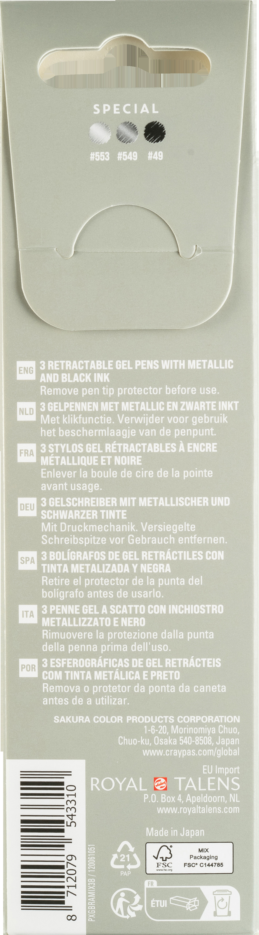 Diese Spezialpackung vereint die beliebtesten Farbeffekte für jedes kreative Kunstprojekt! Der Gelly Roll Classic bietet eine kräftige, klare Farbe für optimale Lesbarkeit. Der Gelly Roll Metallic bietet eine opake und glänzende Geltinte, die eine atemberaubende Farbe bietet, die auf hellen und dunklen Oberflächen hervorsticht. Ganz gleich, ob Sie Tagebuch schreiben, kritzeln oder ein kreatives Kunstprojekt starten, Sie können sich auf die Präzisionsspitze des Stifts verlassen, um scharfe, saubere Linien zu erzeugen. Dieses Set besteht aus 3 einziehbaren Gelstiften mit einer klassischen schwarzen und metallisch schwarzen und silbernen Tinte.