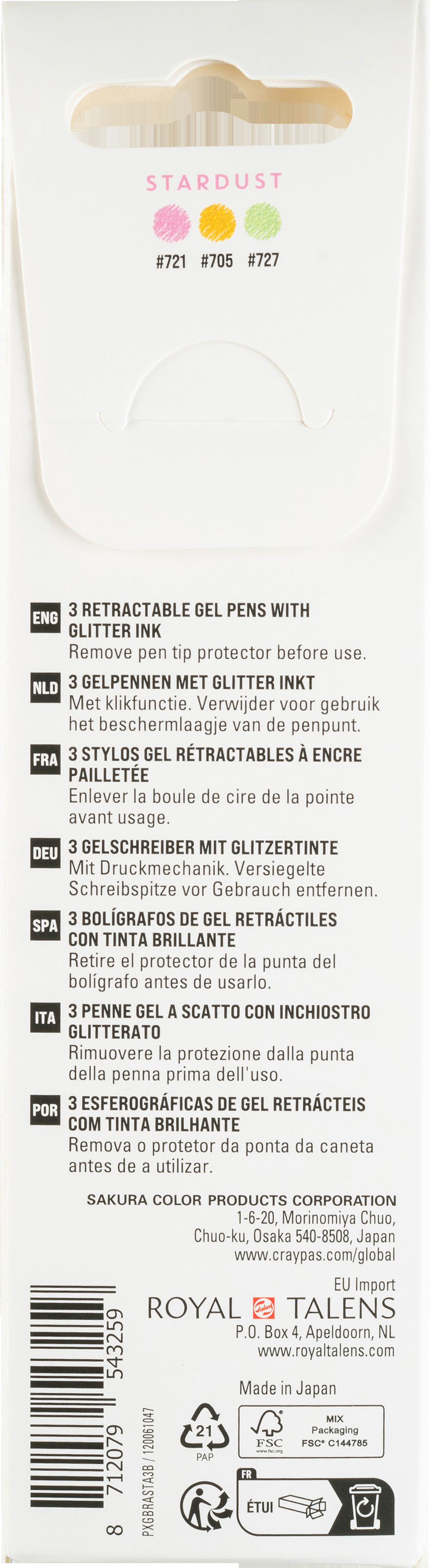 Gelly Roll Stardust verfügt über eine glitzernde Geltinte, die schnell trocknet und einen atemberaubenden Farbeffekt bietet, der das Licht reflektiert und ungleichmässig wie kleine Sterne funkelt. Ob Sie Tagebuch schreiben, kritzeln oder ein kreatives Kunstprojekt starten, Sie können sich auf die Präzisionsspitze des Stifts verlassen, um scharfe, saubere Linien zu erzeugen. Dieses Set besteht aus 3 Gelstiften mit Druckmechanik und glitzernder Tinte in den Farben Orange-Rosa-Smaragd.