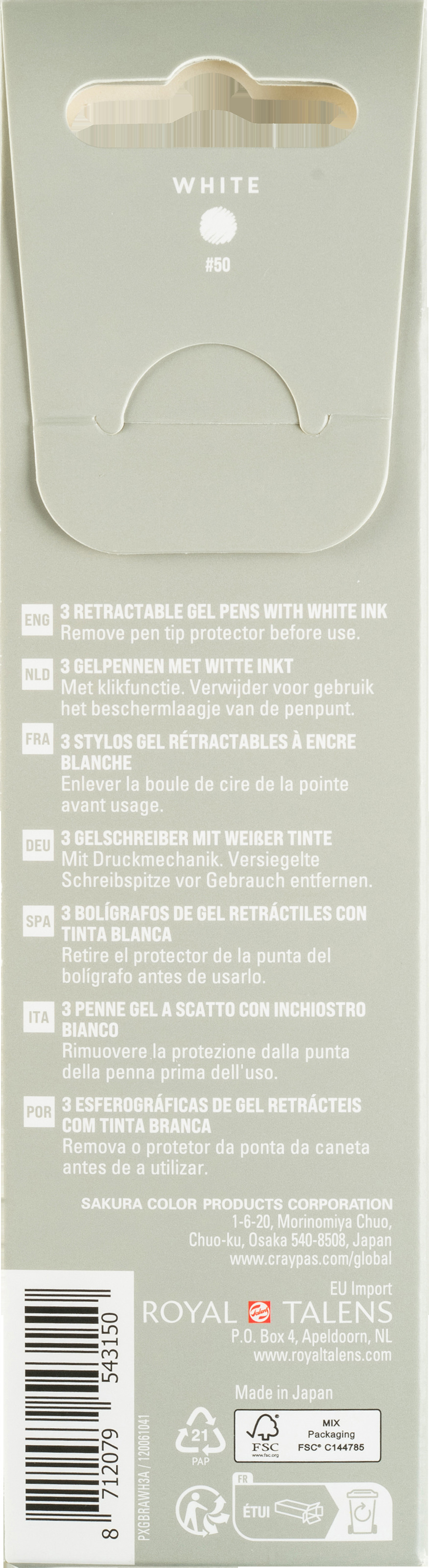 Erleben Sie mit dem Gelly Roll Retractable Gel Pen ein flüssiges, lebendiges Schreibgefühl. Dieser Gelstift ist perfekt für alle, die gerne schreiben, und bietet einen satten, gleichmässigen Tintenfluss für ein makelloses Schreiberlebnis. Dank seines einziehbaren Designs können Sie sofort mit dem Schreiben beginnen.<br>Gelly Roll Classic White verfügt über eine Deckweiss-Gel-Tintenformel, die schnell trocknet und eine atemberaubende leuchtend weisse Farbe bietet, die auf dunklen Oberflächen hervorsticht. Ganz gleich, ob Sie Tagebuch schreiben, kritzeln oder Karten gestalten, Sie können sich auf die Präzisionsspitze des Stifts verlassen, um scharfe, saubere Linien zu erzeugen.