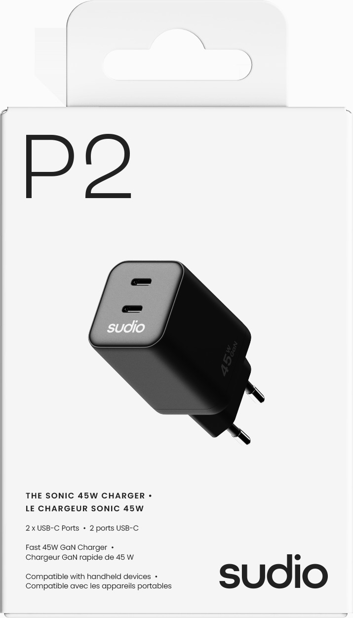 Le Sudio P2 est un chargeur USB-C 45W puissant et compact, conçu pour l'efficacité et la mobilité. Grâce à la technologie moderne GaN, il offre une charge extrêmement rapide dans un format pratique. C'est le compagnon idéal pour garder ta tablette, ton smartphone et tes écouteurs prêts à l'emploi, où que tu sois. Son design sobre en noir s'intègre parfaitement dans ton quotidien et te permet de rester connecté en permanence.