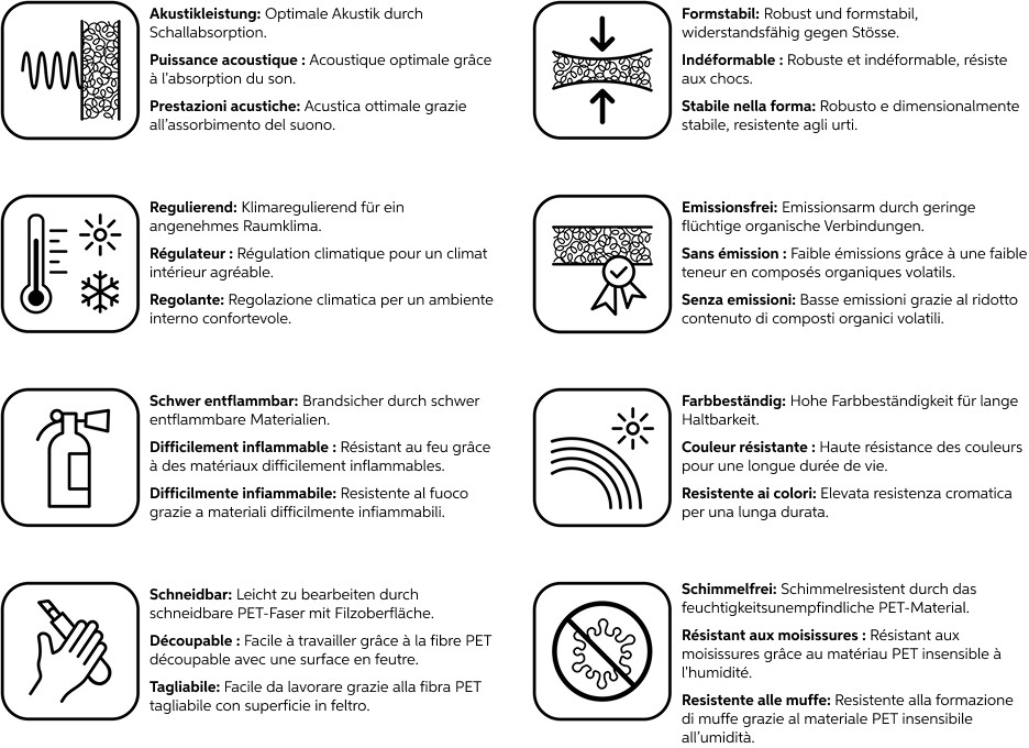 L'absorbeur acoustique mural suonoSTRUCTURE est un véritable produit up-cycling et se distingue par son design moderne et fonctionnel ainsi que par sa longévité. Fabriqués à partir de notre suonoBOARD® de haute qualité, avec d'excellentes valeurs d'absorption acoustique et un taux de recyclage de plus de 50 %, nos produits à caractère organique séduisent par leur structure de surface et leur couleur homogènes.