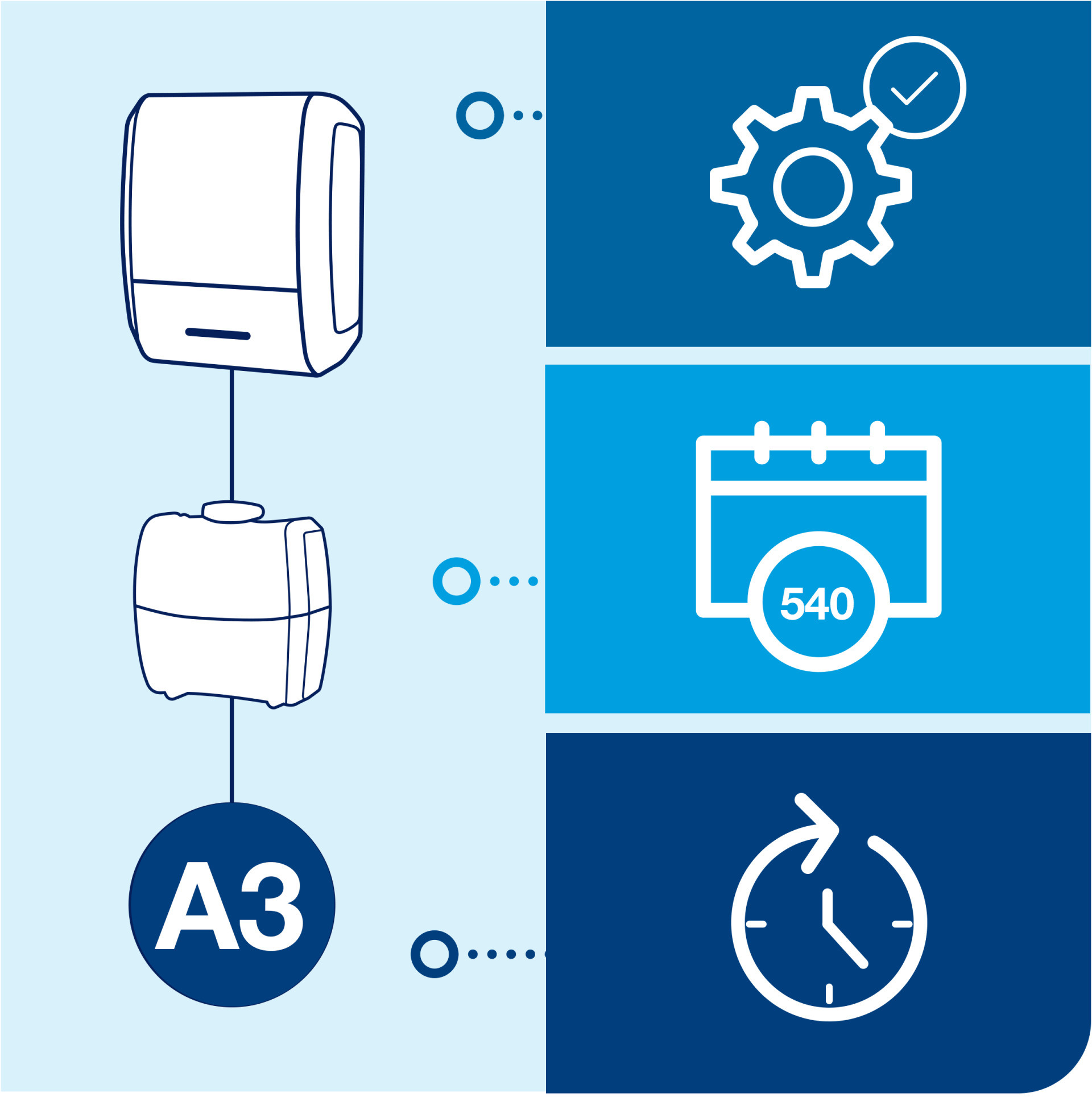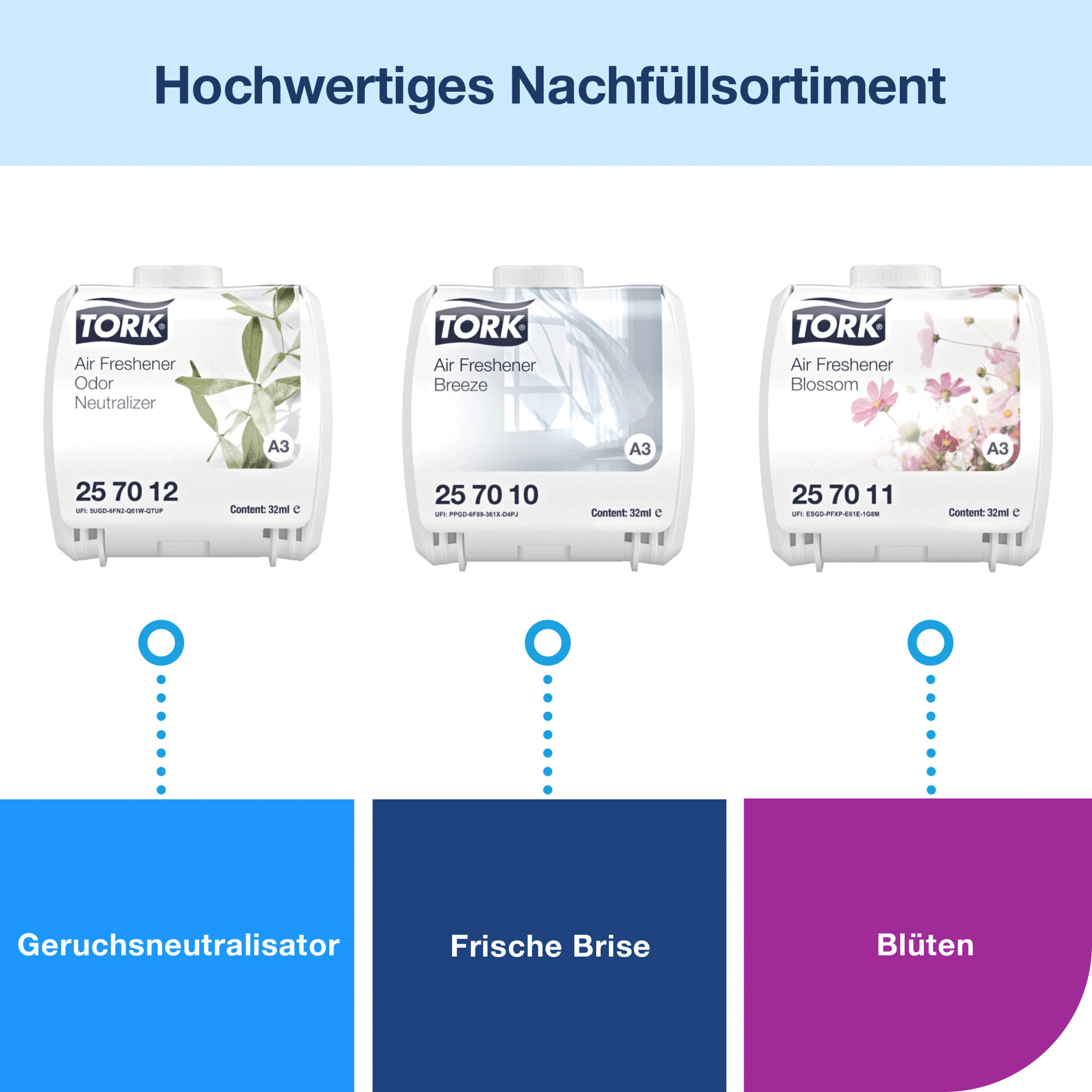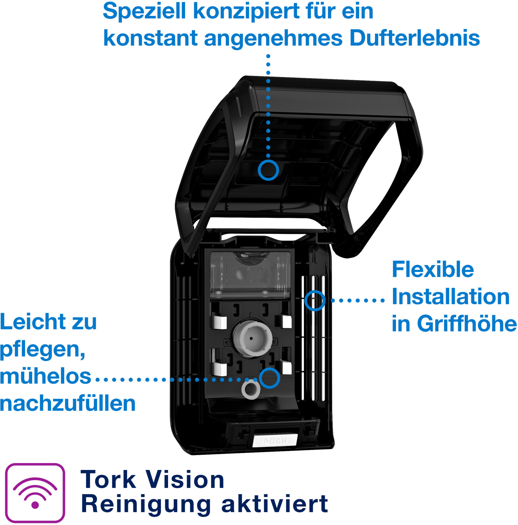 Le distributeur de désodorisant continu Tork au design Elevation diffuse le parfum de manière continue et homogène grâce à une technologie de nébulisation unique. Certifié facile à utiliser pour un remplissage aisé. Disponible en trois parfums soigneusement sélectionnés - Brise de printemps, Rêve floral et Neutralisateur d'odeurs - pour une fraîcheur continue et durable dans les toilettes. Un positionnement flexible à une hauteur facilement accessible pour le personnel d'entretien signifie qu'aucun équipement de travail spécial n'est nécessaire et qu'il n'y a pas de frais d'entretien supplémentaires.