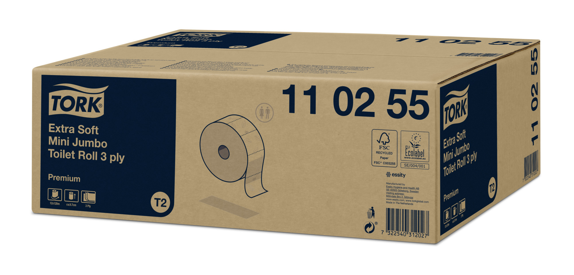 Le système Tork Mini Jumbo est synonyme d'efficacité en termes de temps et de réduction des coûts et offre beaucoup plus de papier toilette que les rouleaux standard. Le papier toilette Tork Mini Jumbo Premium 3 plis se distingue par son aspect haut de gamme, sa sensation agréable et ses performances élevées. Il est idéal pour les sanitaires à fréquentation moyenne à élevée.