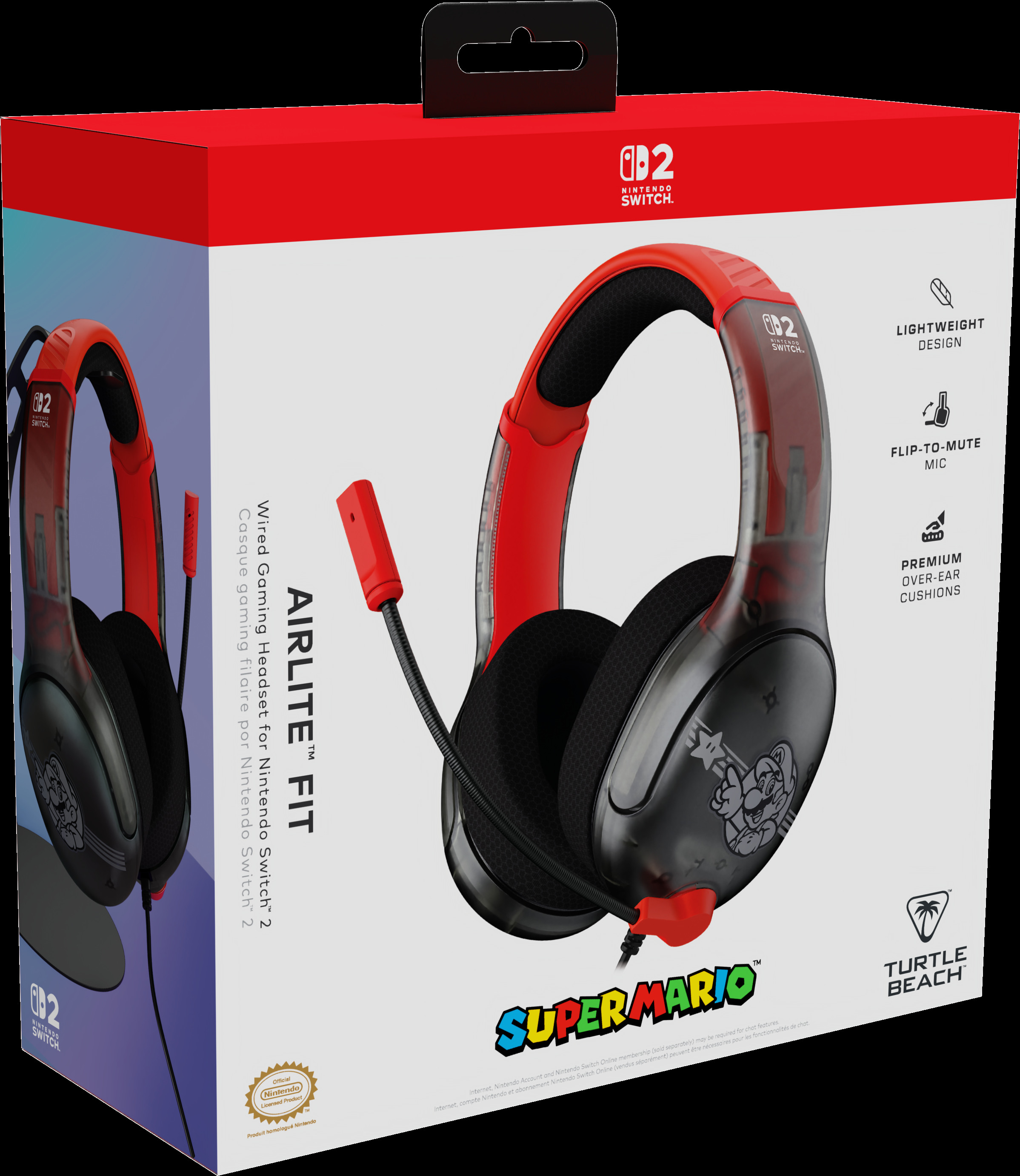 Genieße absoluten Komfort beim Gaming mit dem Turtle Beach® Airlite™ Fit Kabelgebundenen Gaming-Headset, offiziell von Nintendo für Nintendo Switch™ 2 lizenziert. Dieses Headset funktioniert auch mit Nintendo Switch™, Nintendo Switch™ Lite und Nintendo Switch™ - OLED-Modell. Dieses von unseren hauseigenen Ingenieuren entwickelte Headset liefert fein abgestimmten Sound über hochwertige 40-mm-Lautsprecher und bietet sowohl Gelegenheits- als auch Wettkampfspielern ein beeindruckendes Erlebnis. Die hochgezogenen, ohrumschließenden Jersey-Strickpolster bieten außergewöhnlichen Komfort, sodass du alle hohen und tiefen Töne hören kannst, während Außengeräusche effektiv ausgeblendet werden. Das elegante, "noise-canceling" Mikrofon sorgt dafür, dass deine Stimme klar und deutlich zu hören ist, und wenn du nicht kommunizieren möchtest, klappe das Mikrofon einfach nach oben, um es stumm zu schalten. Der vielseitige 3,5-mm-Anschluss passt zu allen Nintendo Switch™-Systemen und macht das Headset zum perfekten Allrounder für jeden Gamer.