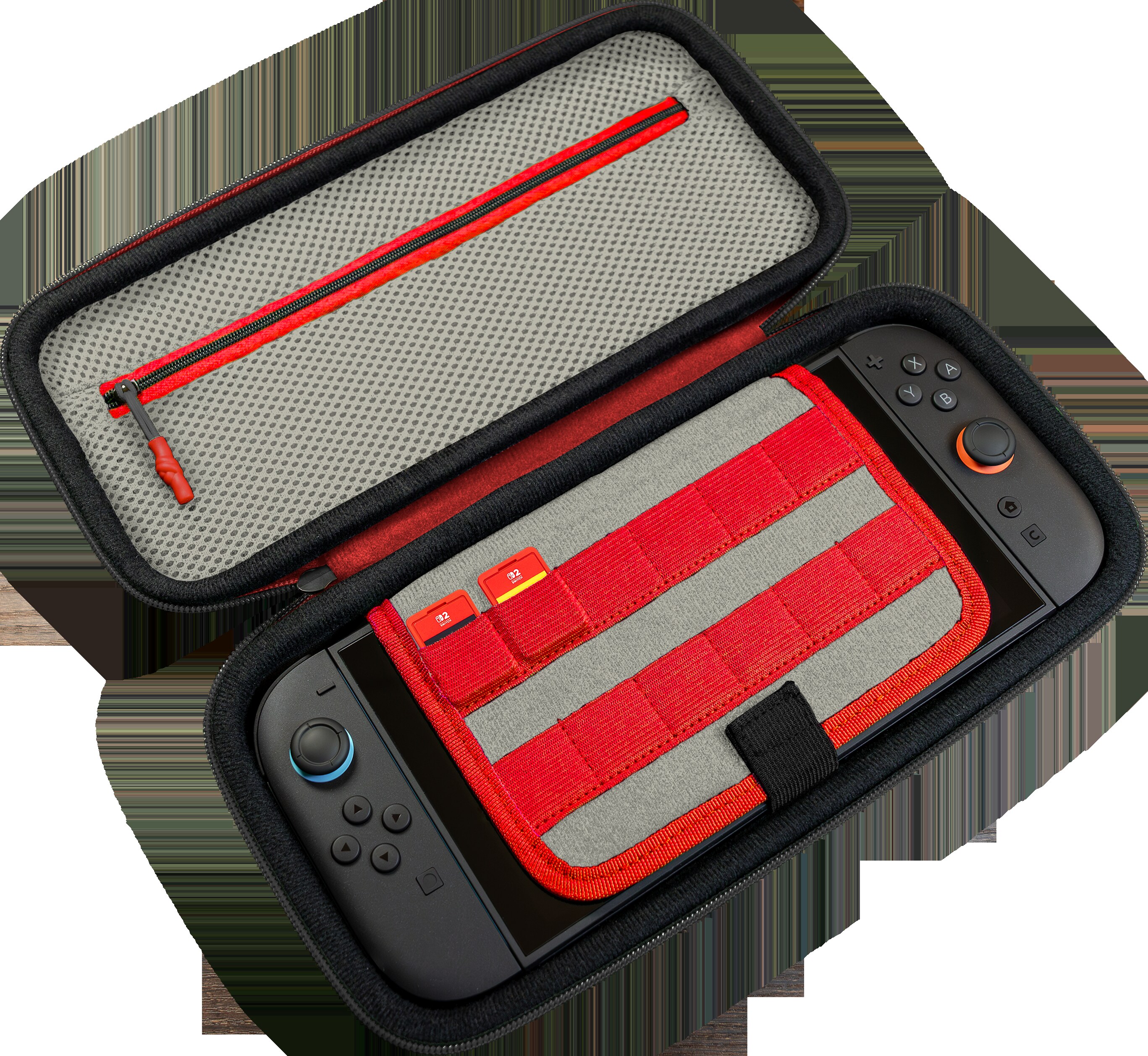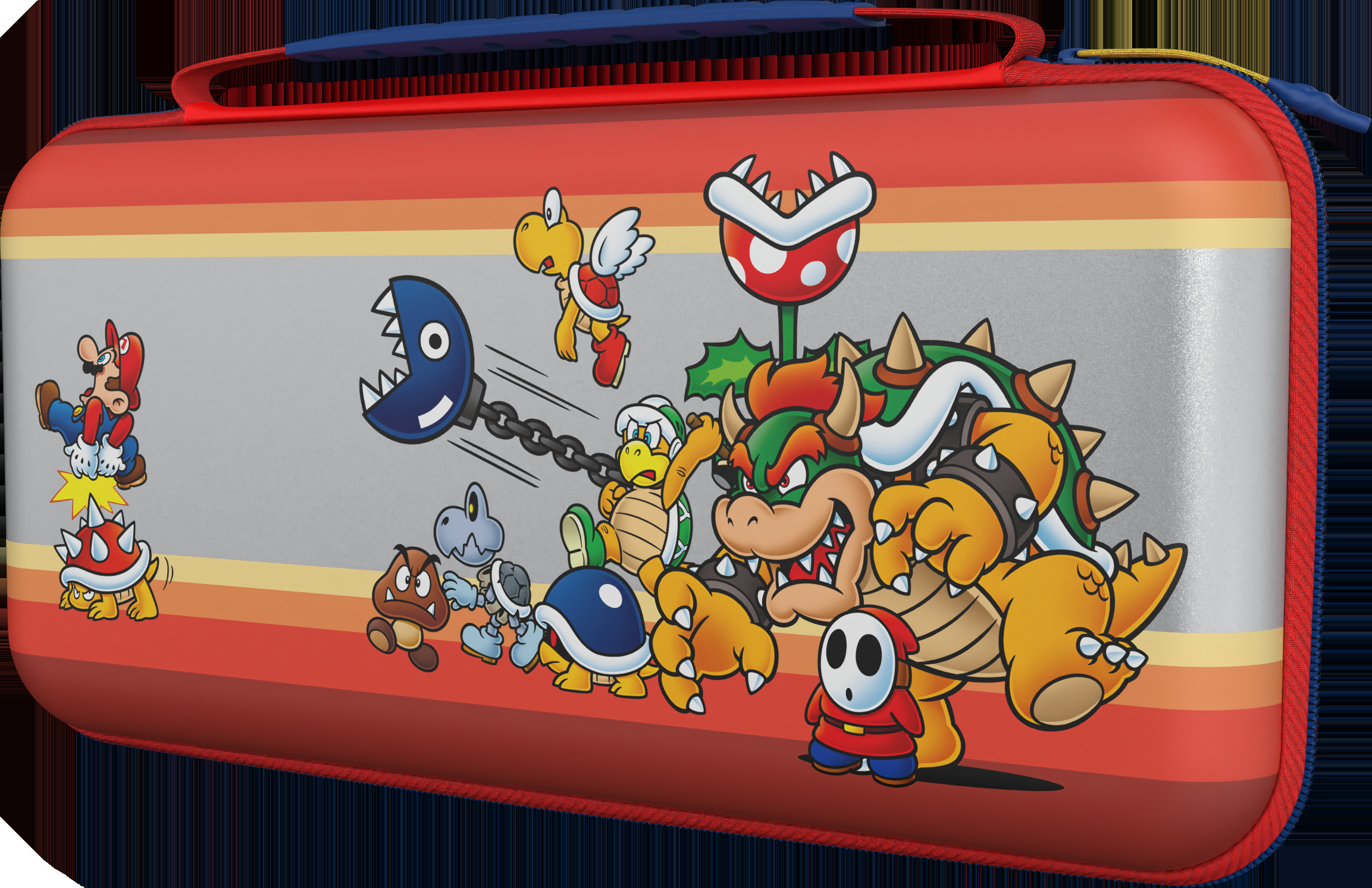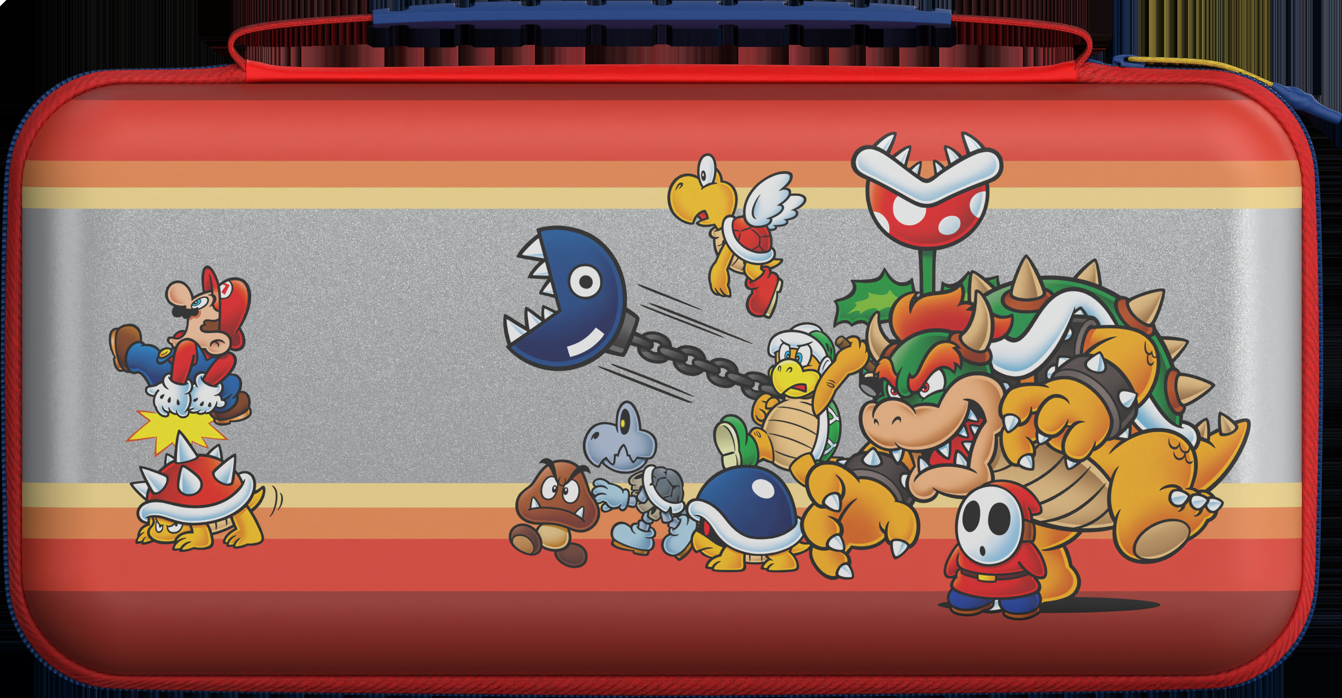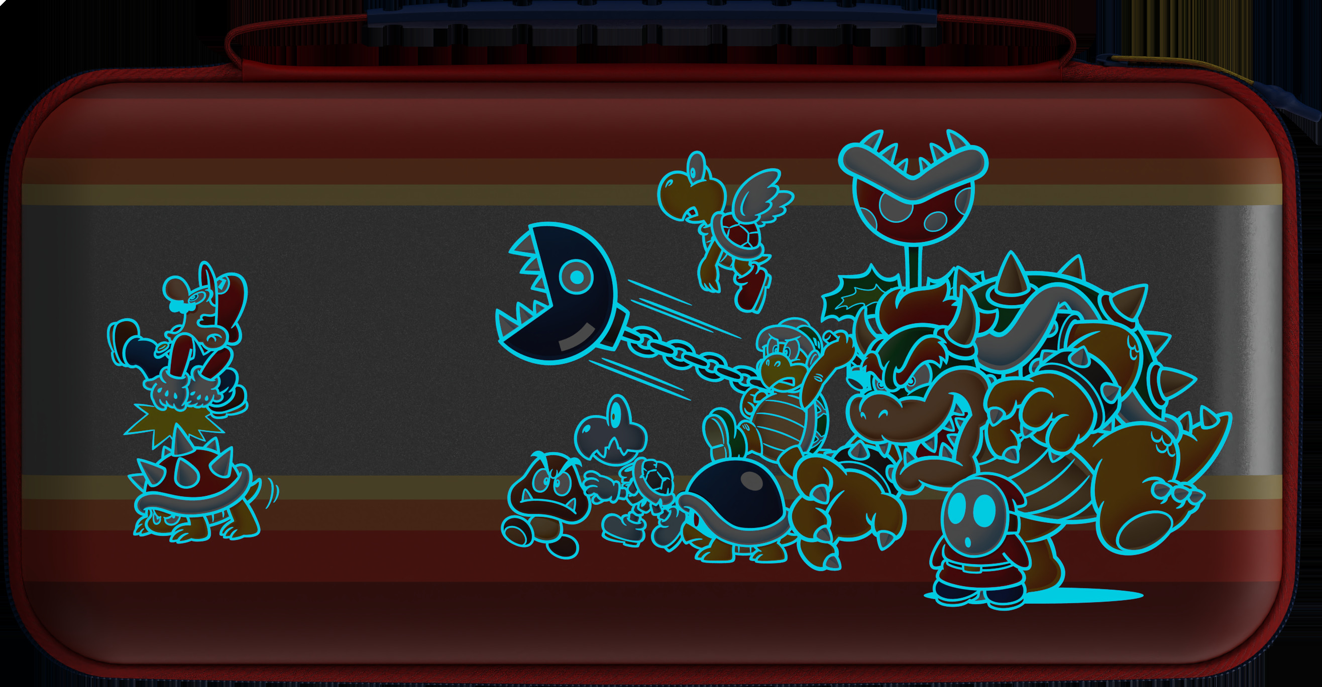 Mit dem offiziell lizenzierten PlayTrek™-Reiseetui für Nintendo Switch™ 2 kannst du selbstbewusst verreisen. Diese Koopa Troop-Edition hat ein cooles Design, das im Dunkeln leuchtet und Bowsers legendäre Handlanger richtig gut zur Geltung bringt. Dieses robuste Etui ist auch mit Nintendo Switch™ und Nintendo Switch™ - OLED-Modell kompatibel und verfügt über eine widerstandsfähige, geformte EVA-Schale sowie eine PU-Lederoptik-Außenhülle für zusätzlichen Schutz. Eine gepolsterte Klappe schützt den Bildschirm und dient gleichzeitig als Halterung für Spielkarten, während eine Netztasche Zubehör ordentlich verstaut.